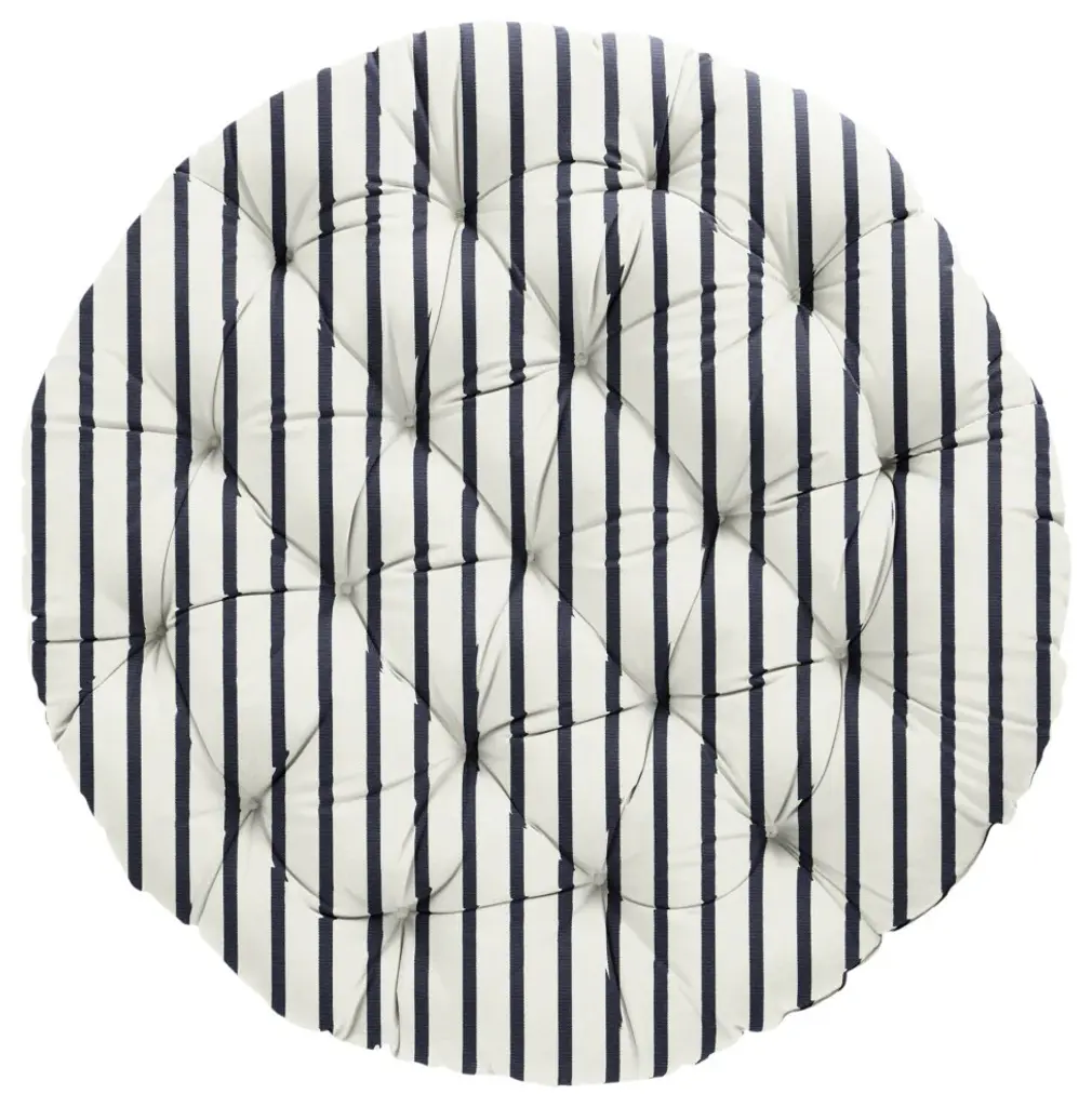 Cozy up and relax in comfort with this luxurious Sunbrella Lido Indigo tufted papasan cushion. This cushion features a fresh stripe pattern fabric, sure to add flair and a personal touch to any room. Grab your coffee for a moment of bliss, or kick back with a great book in this versatile yet stylish seating. Crafted out of durable, wear-resistant Sunbrella fabric, this North American-made cushion provides long-lasting quality and comfort you can trust for any high-traffic living space.