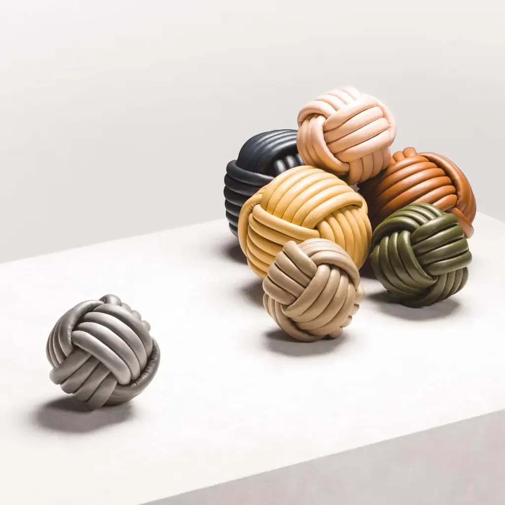 Nappa leather paperweight. Available only in a selection of nappa leather finishes from our finishes chart. Very stable. Nodo is an Italian word that means knot.