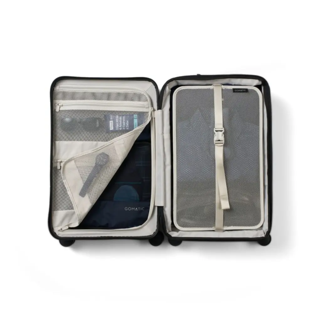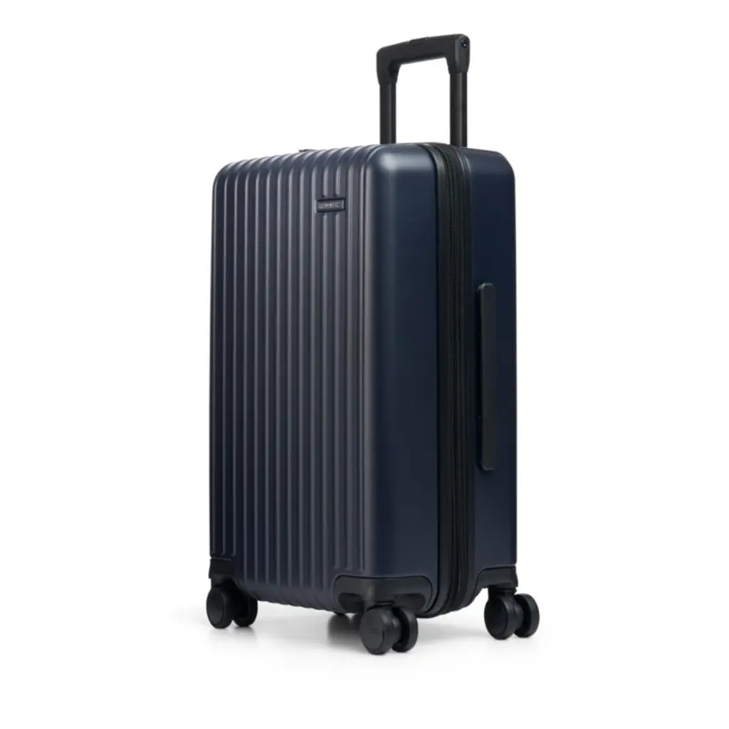 This ingeniously designed suitcase holds up to 20% more than other carry-ons of the same size. Expansion capability and a compression panel to maximize space means you can add up to three days' worth more of clothes. Outfitted with a TSA-approved lock, an adjustable aluminum handle and silent-glide wheels, the suitcase makes negotiating the airport or train station a breeze. The luggage is made of durable polycarbonate, constructed with microwelding and a ridged design for extra strength, and rigorously tested to stand up to the demands of travel.