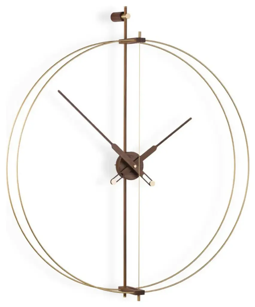 The modern Barcelona Premium watch is a redesign of Nomon''s bestseller par excellence. It incorporates a more glamorous point in its design and stands out for the brass finish of its double fiberglass ring.The Premium collection brings together some of Nomon''s most iconic watches renewed making them more sophisticated and elegant.This classic and timeless timepiece combines craftsmanship with noble materials resulting in a sophisticated clock with a minimalist design that brings a distinguished character to the room.Specifications:Case: Walnut woodHands: Walnut woodLugs: Black fiberglass or brass-finished fiberglassMovement: German UTSDimensions: Ø90x130h cm.Collection: Lacquered woodRing: Black fiberglass