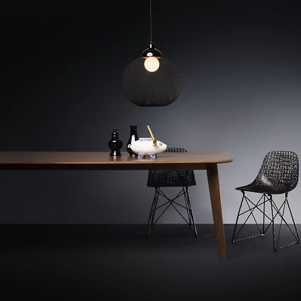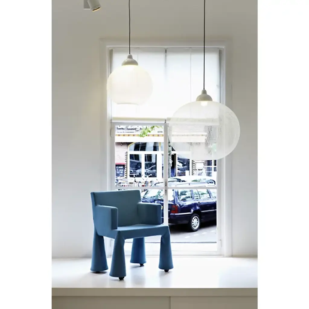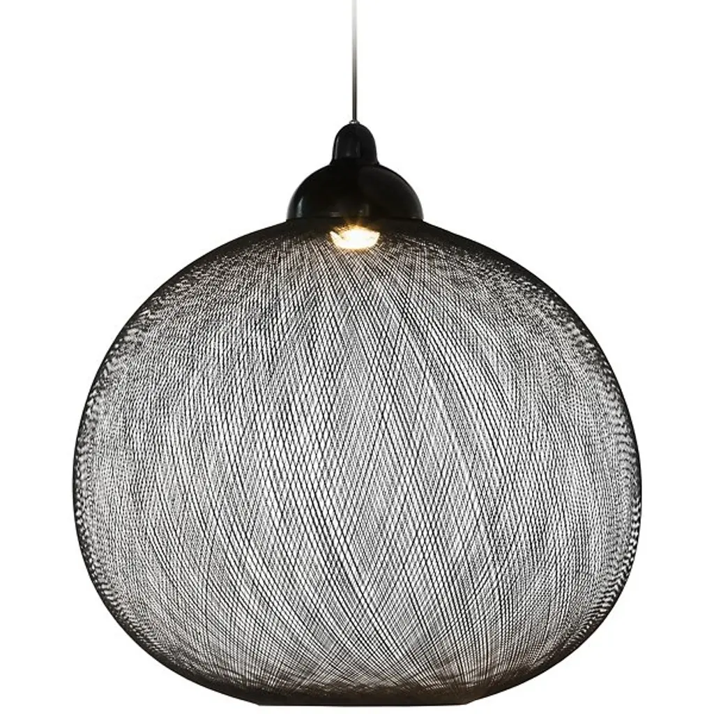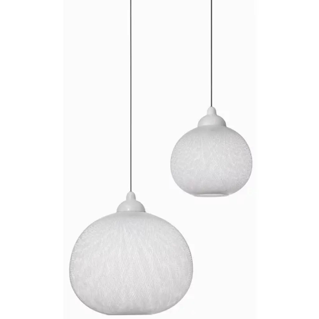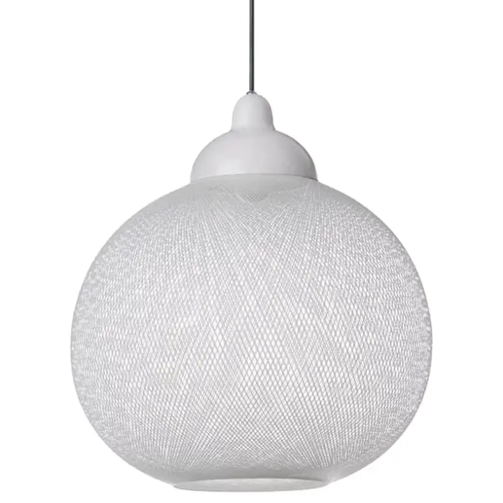 The Non Random Light by Moooi recreates the symmetry and shape of a yarn ball or bubble to bring a beautiful shine to indoor spaces. Designer Bertjan Pot's fascination for techniques, structures, and patterns is reflected in this pendant light. This sphere is constructed in a mechanically pre-programmed way from fiberglass with epoxy resin. Powder-coated aluminum cap with an anodized aluminum reflector tops the shade. This lantern-like profile can be suspended as a solo fixture or in clusters over seating areas, foyers, or dining spaces to infuse a pleasant, modern flair.
