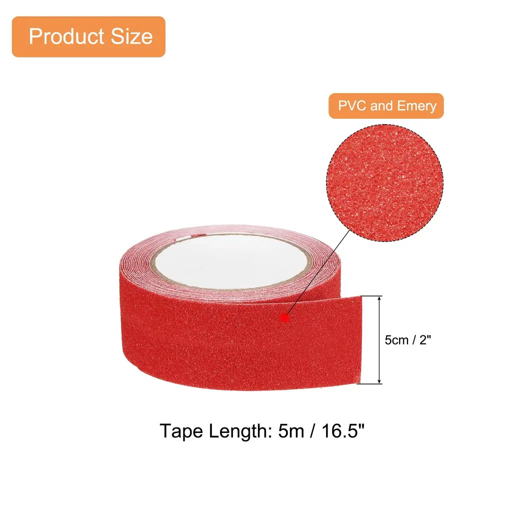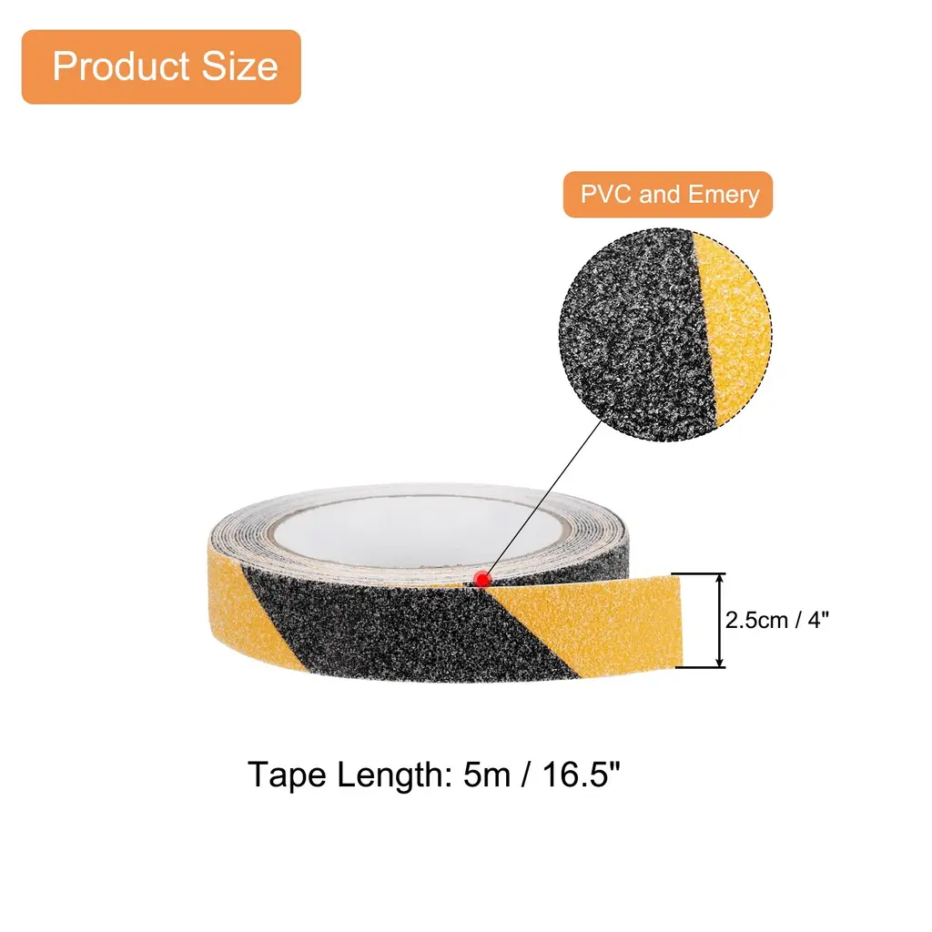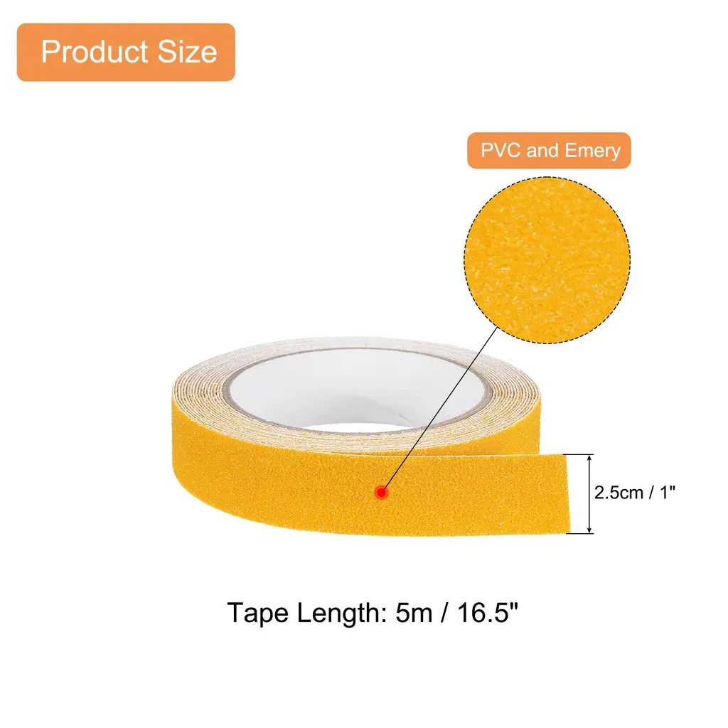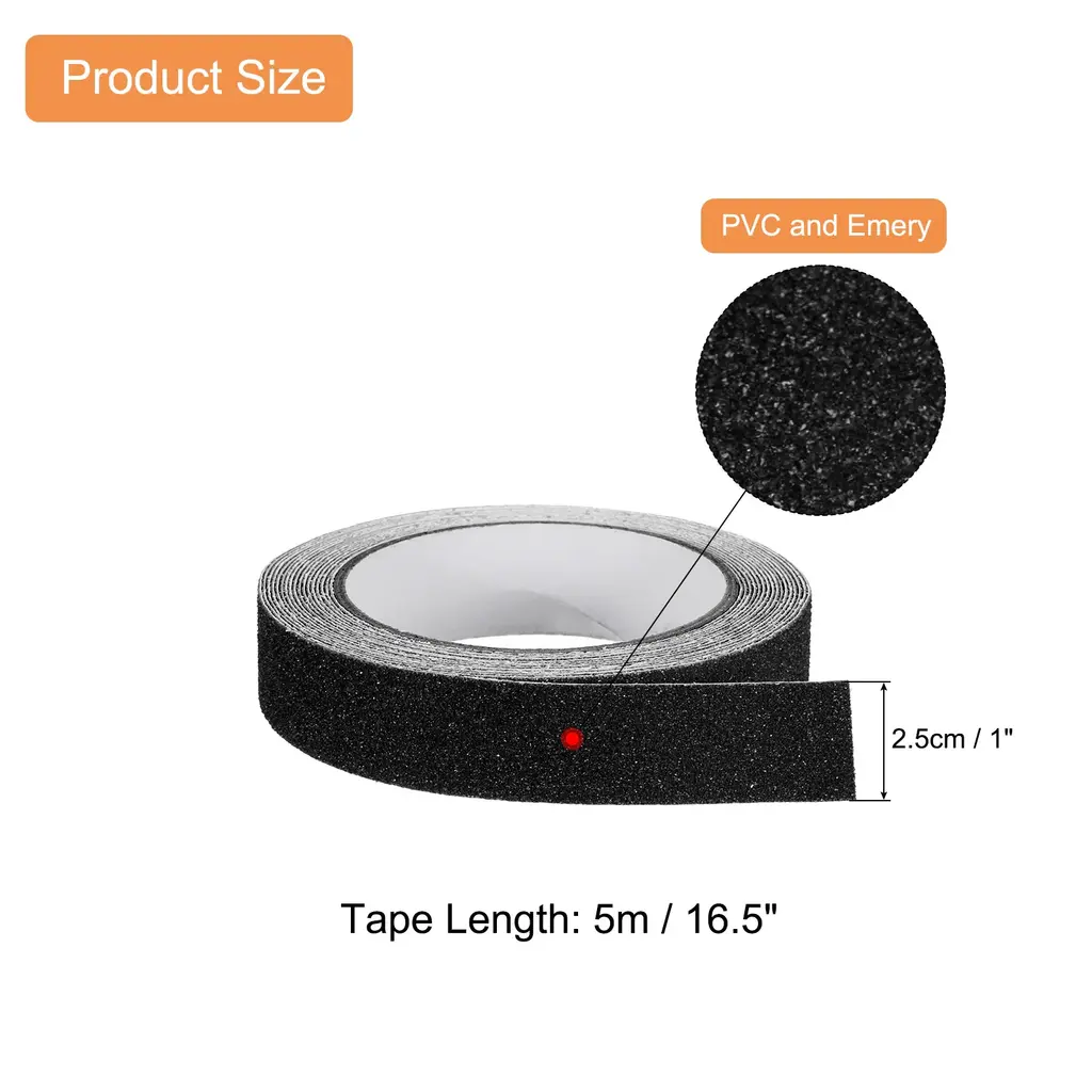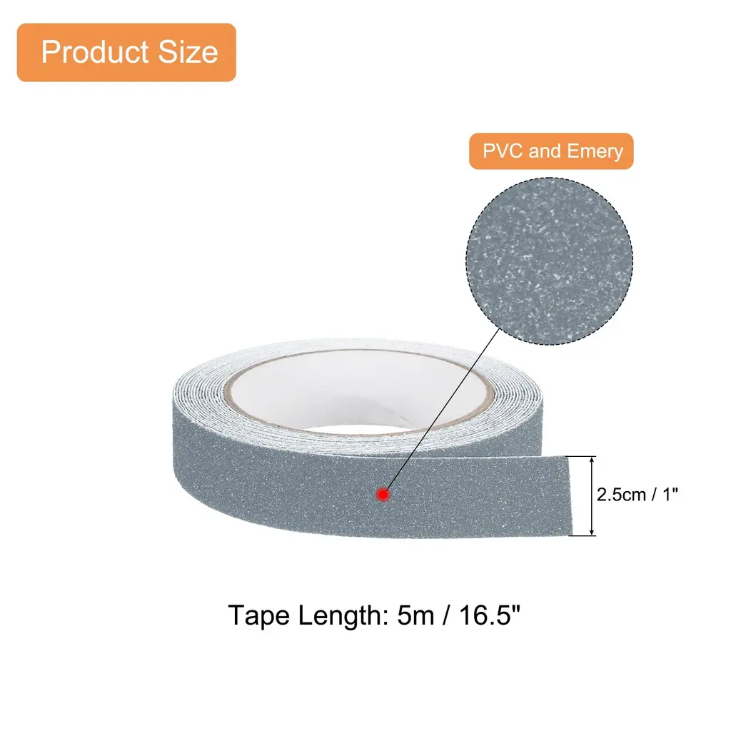 Description:1. The non-slip tape is made of waterproof and durable PVC frosted materials with a special sand surface structure, ensuring its long-lasting non-slip effect in both indoor and outdoor environments.2. This non-grid tape has a strong backing adhesive, and the frosted and non-skid pattern enhances traction and grip, designed to improve safety by preventing slips, trips, and falls.3. Peel off the backing of the tape and apply it to clean and dry surfaces, then press firmly to ensure proper adhesion. The self-adhesive backing allows for easy installation without the need for additional tools or adhesives, and you can cut the tape to the desired length using scissors or a utility knife.4. This non skid tape is great for a wide range of applications, including stairs, stair treads, walkways, decks, platforms, and other areas where slip resistance is needed, which can be used both indoors and outdoors.5. Ensure that the surface to which the tape is applied is clean, dry, and free of any dust, dirt, or grease. Smooth out any air bubbles or wrinkles during installation to maximize the tape's effectiveness.Specification:Material: PVC and EmeryTape Width: 2.5 cm/1 inchTape Length: 5 m/16.5 inchPackage Included: 1pc x non skid tape