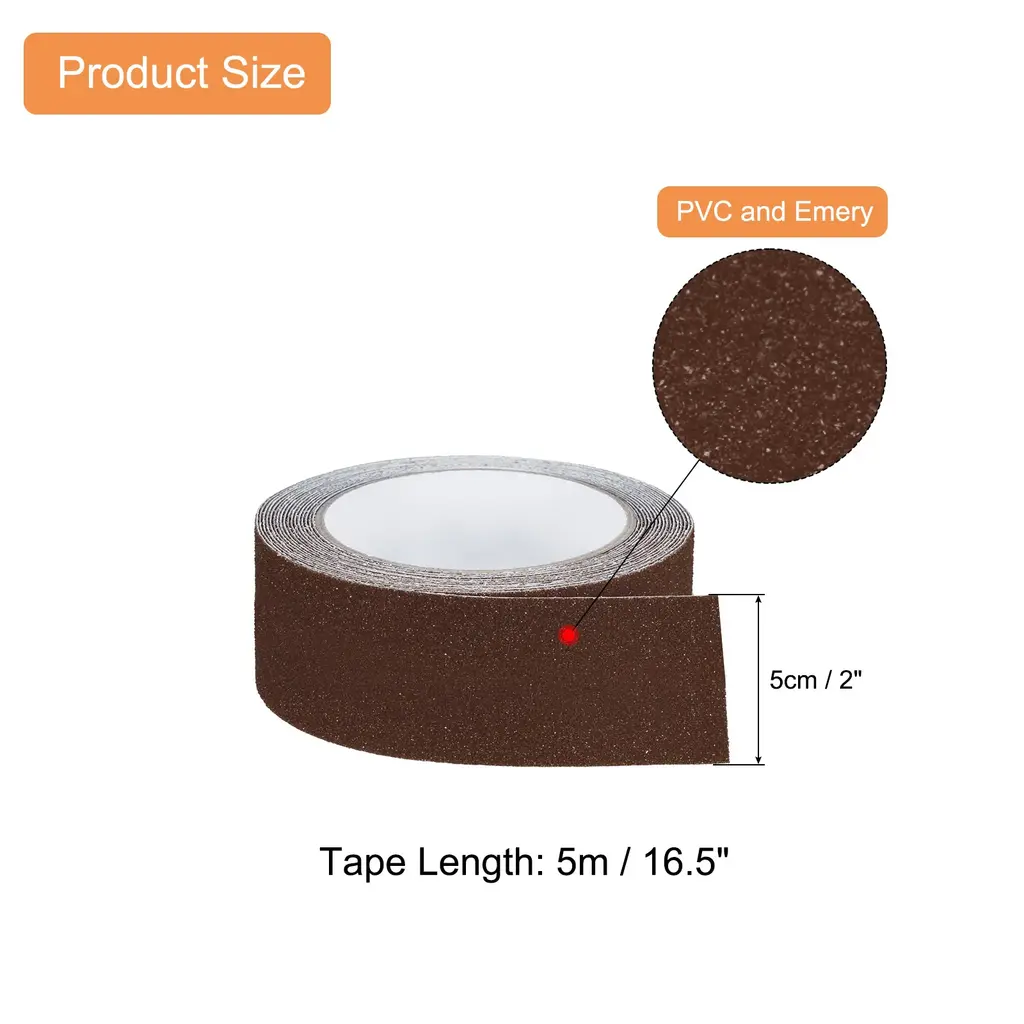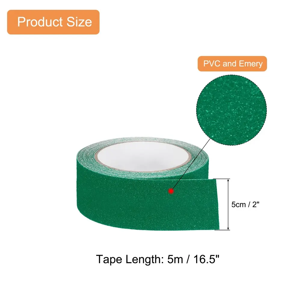 Description:1. The non-slip tape is made of waterproof and durable PVC frosted materials with a special sand surface structure, ensuring its long-lasting non-slip effect in both indoor and outdoor environments.2. This non-grid tape has a strong backing adhesive, and the frosted and non-skid pattern enhances traction and grip, designed to improve safety by preventing slips, trips, and falls.3. Peel off the backing of the tape and apply it to clean and dry surfaces, then press firmly to ensure proper adhesion. The self-adhesive backing allows for easy installation without the need for additional tools or adhesives, and you can cut the tape to the desired length using scissors or a utility knife.4. This non skid tape is great for a wide range of applications, including stairs, stair treads, walkways, decks, platforms, and other areas where slip resistance is needed, which can be used both indoors and outdoors.5. Ensure that the surface to which the tape is applied is clean, dry, and free of any dust, dirt, or grease. Smooth out any air bubbles or wrinkles during installation to maximize the tape's effectiveness.Specification:Material: PVC and EmeryTape Width: 5 cm/2 inchTape Length: 5 m/16.5 inchPackage Included: 1pc x non skid tape