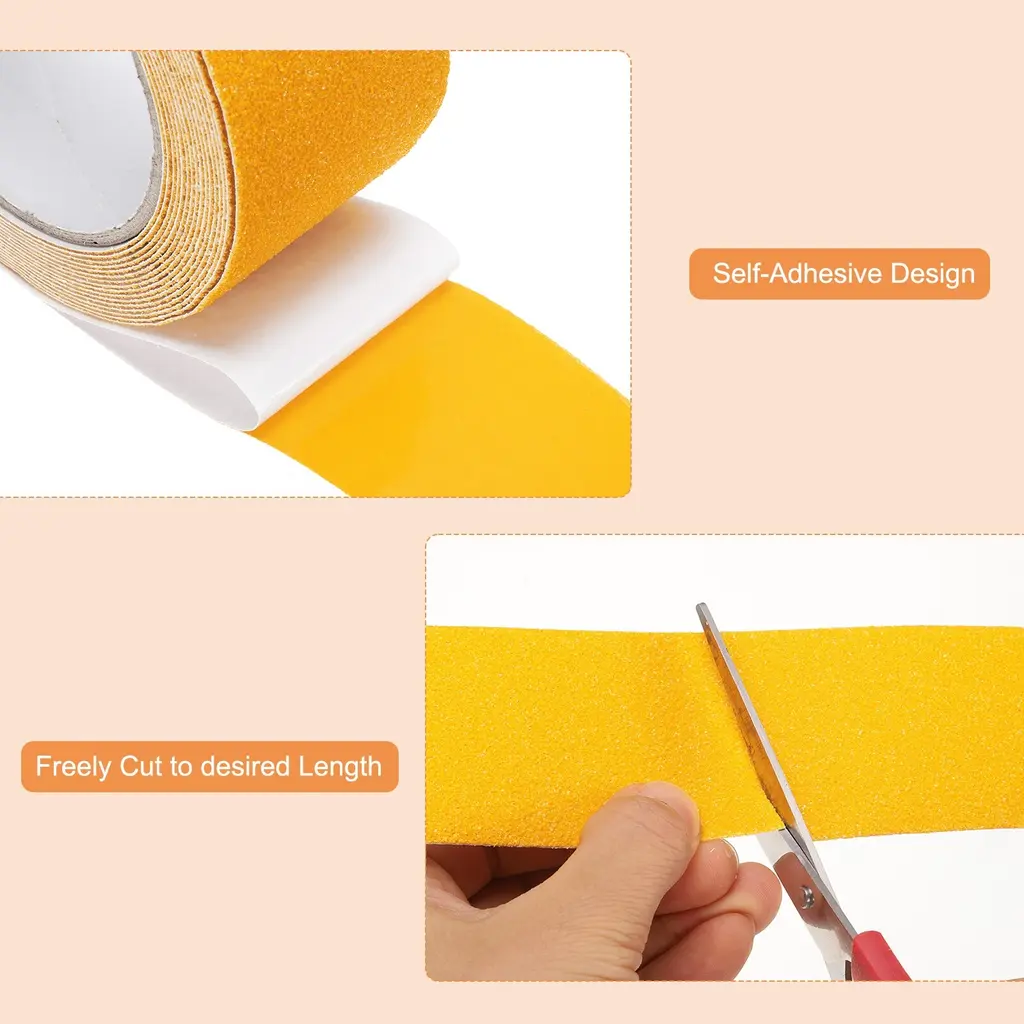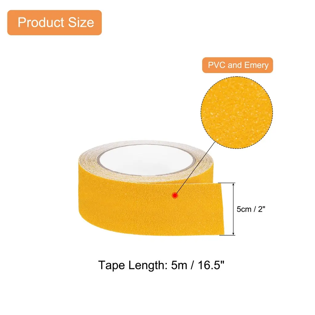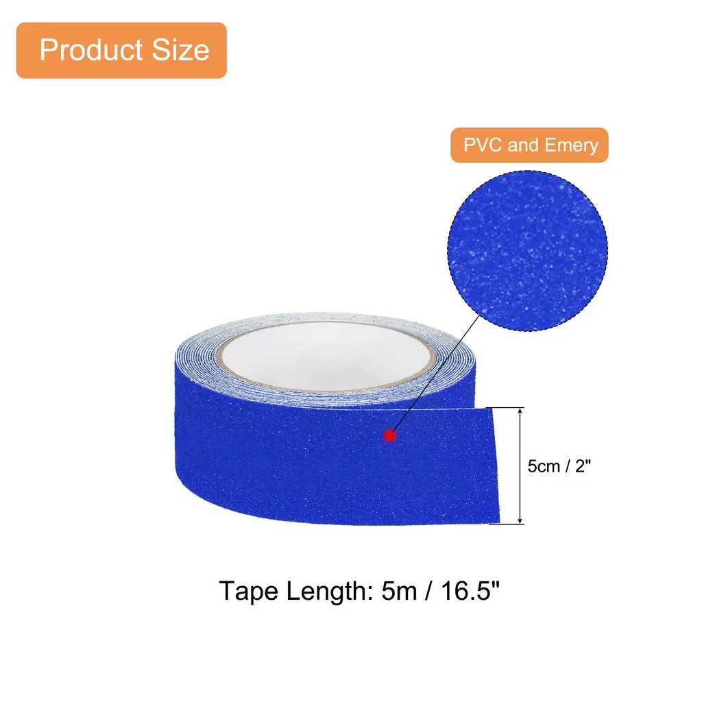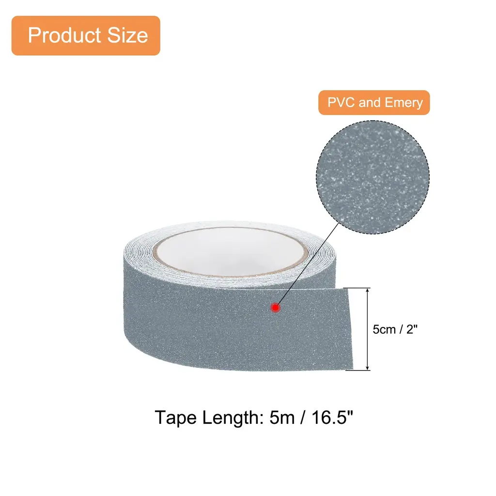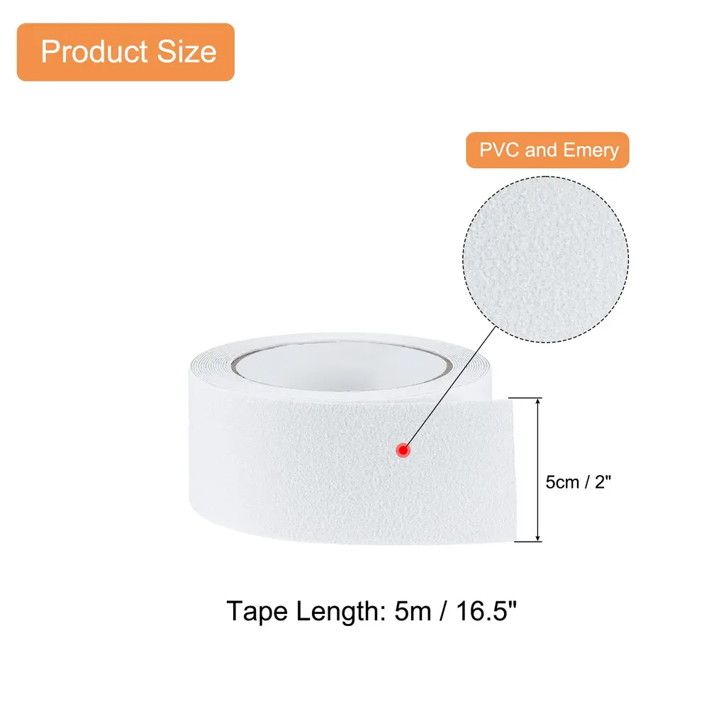 Description:1. The non-slip tape is made of waterproof and durable PVC frosted materials with a special sand surface structure, ensuring its long-lasting non-slip effect in both indoor and outdoor environments.2. This non-grid tape has a strong backing adhesive, and the frosted and non-skid pattern enhances traction and grip, designed to improve safety by preventing slips, trips, and falls.3. Peel off the backing of the tape and apply it to clean and dry surfaces, then press firmly to ensure proper adhesion. The self-adhesive backing allows for easy installation without the need for additional tools or adhesives, and you can cut the tape to the desired length using scissors or a utility knife.4. This non skid tape is great for a wide range of applications, including stairs, stair treads, walkways, decks, platforms, and other areas where slip resistance is needed, which can be used both indoors and outdoors.5. Ensure that the surface to which the tape is applied is clean, dry, and free of any dust, dirt, or grease. Smooth out any air bubbles or wrinkles during installation to maximize the tape's effectiveness.Specification:Material: PVC and EmeryTape Width: 5 cm/2 inchTape Length: 5 m/16.5 inchPackage Included: 1pc x non skid tape