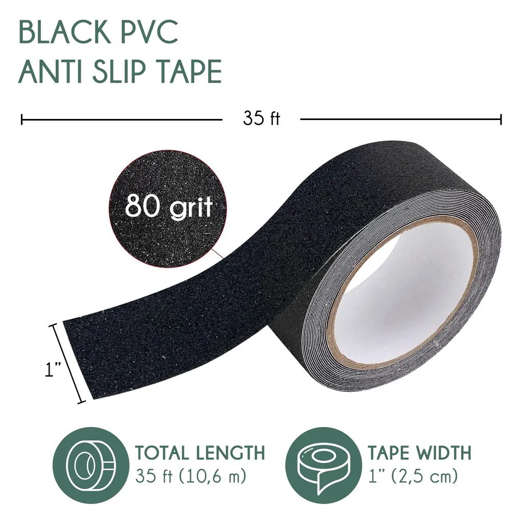 Non-Slip Grip Tape - Waterproof Non-Skid Adhesive Tape For Stairs, - Heavy Duty Peva Safety Anti Slip Tape - 1 Inch X 35 Feet - Black