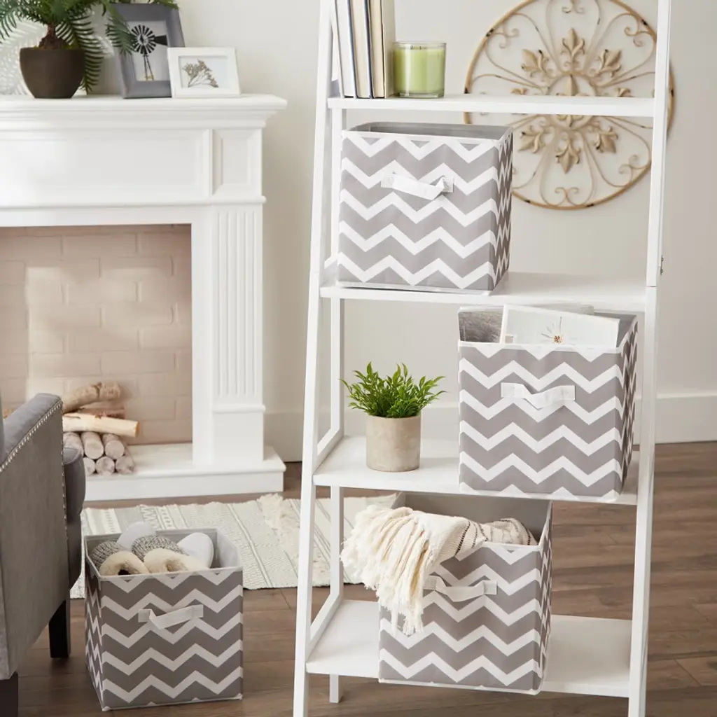 Nonwoven Polyester Cube Chevron Gray Square 11x11x11 Set/4