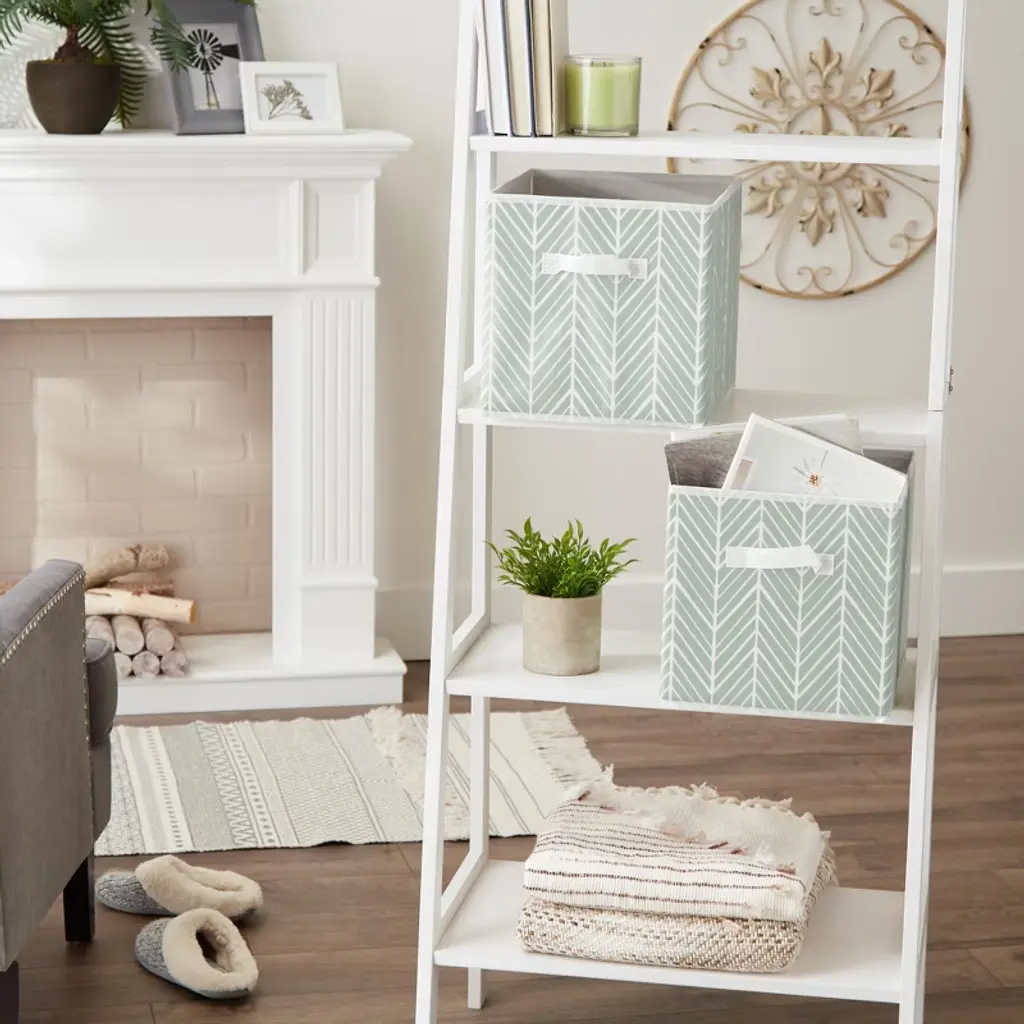 Nonwoven Polyester Cube Herringbone Mint Square 11x11x11 Set/2