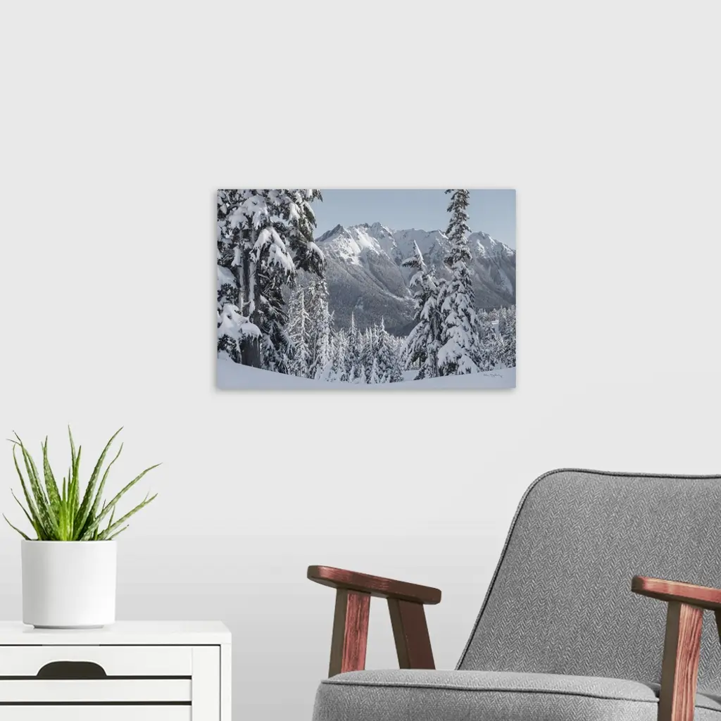 Nooksack Ridge in winter seen from Heather Meadows Recreation Area, North Cascades, Washington.
