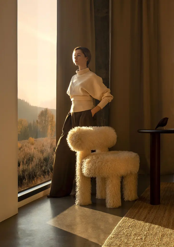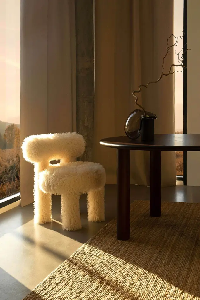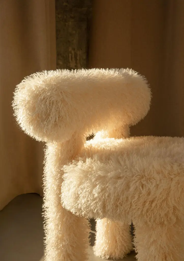 By NoomDesigned By Kateryna SokolovaThe latest addition to NOOM's iconic furniture collection is the Gropius Fluffy Edition. This stunning chair combines timeless aesthetics with ultimate comfort, perfect for interior designers, architects, and design lovers looking to make a statement in their spaces.GROPIUS furniture collection is dedicated to the 100th anniversary of the founding of the Bauhaus School in Germany. The designer Kateryna Sokolova has “gathered” the shape of this chair from the cylinders.The Chair Gropius Fluffy Edition can be customized in various colours to suit any design schemeLead Time 8 WeeksMaterials: wood, plywood, foam rubber, injection-molded soft foam, fabricFabric: Misia Azur Faux Fur