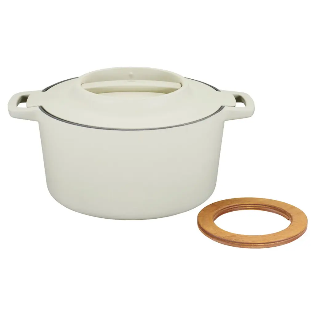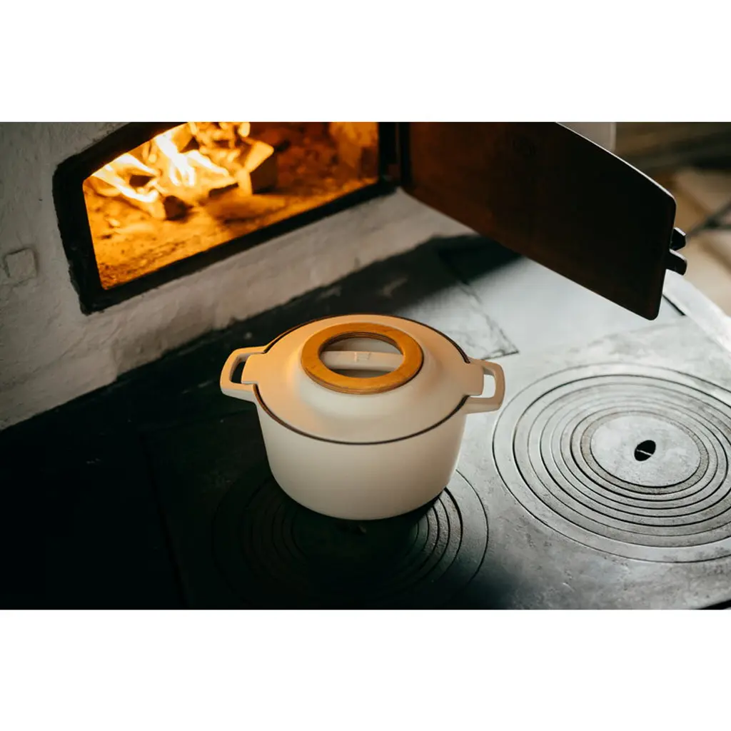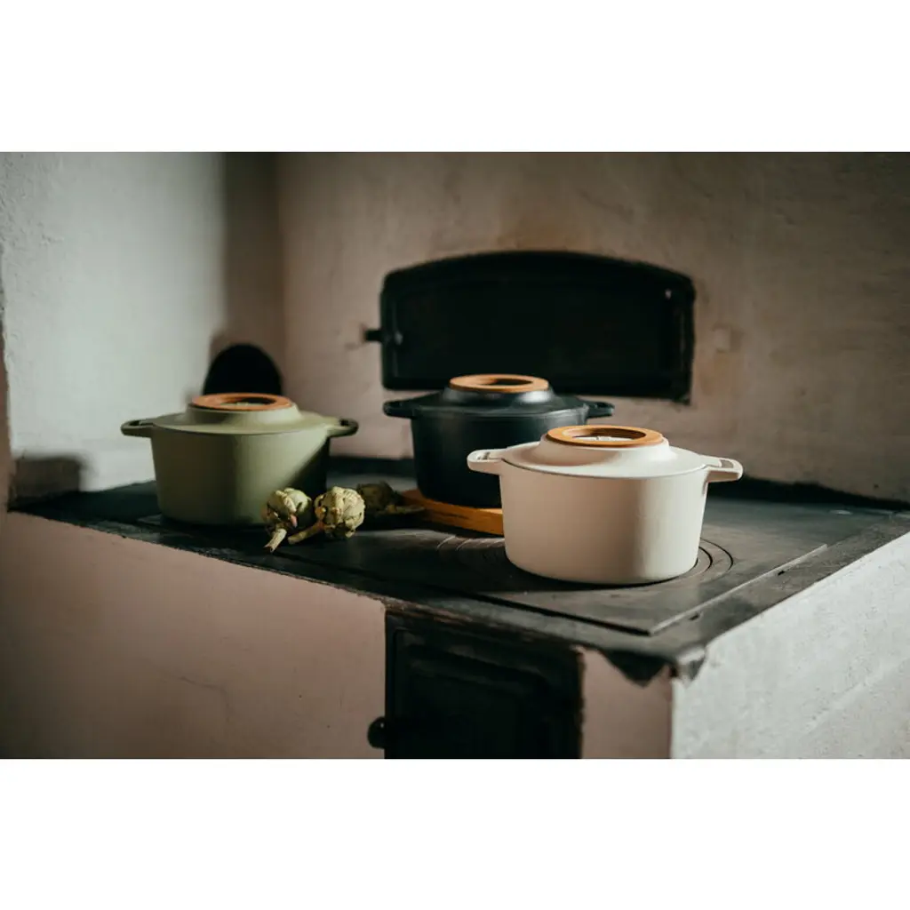 The Fiskars Norden cast iron pot is perfect for gentle simmering, whether on the stovetop or in the oven. Equipped with a removable wooden trivet on the lid, this cast iron pot optimally enhances the flavors of your dishes. Due to the unique Ceratec coating and Thermium mineral treatment, the pot has a non-stick surface that is suitable for high-temperature frying and oven cooking at up to 270°C. This special edition released in celebration of Fiskars' 375th anniversary features a birch-white exterior and a black interior. The colored Norden pots are available for a limited time only. The Norden cast iron pot is a member of Fiskars' top-quality cookware range inspired by Nordic cooking traditions and Finnish knife-making heritage. The Norden collection is made in Finland using strong, durable and easy-to-maintenance materials such as steel, cast iron and wood. Fiskars Norden is a winner of Australia's Good Design Award 2018 and the Red Dot Design Award 2018.