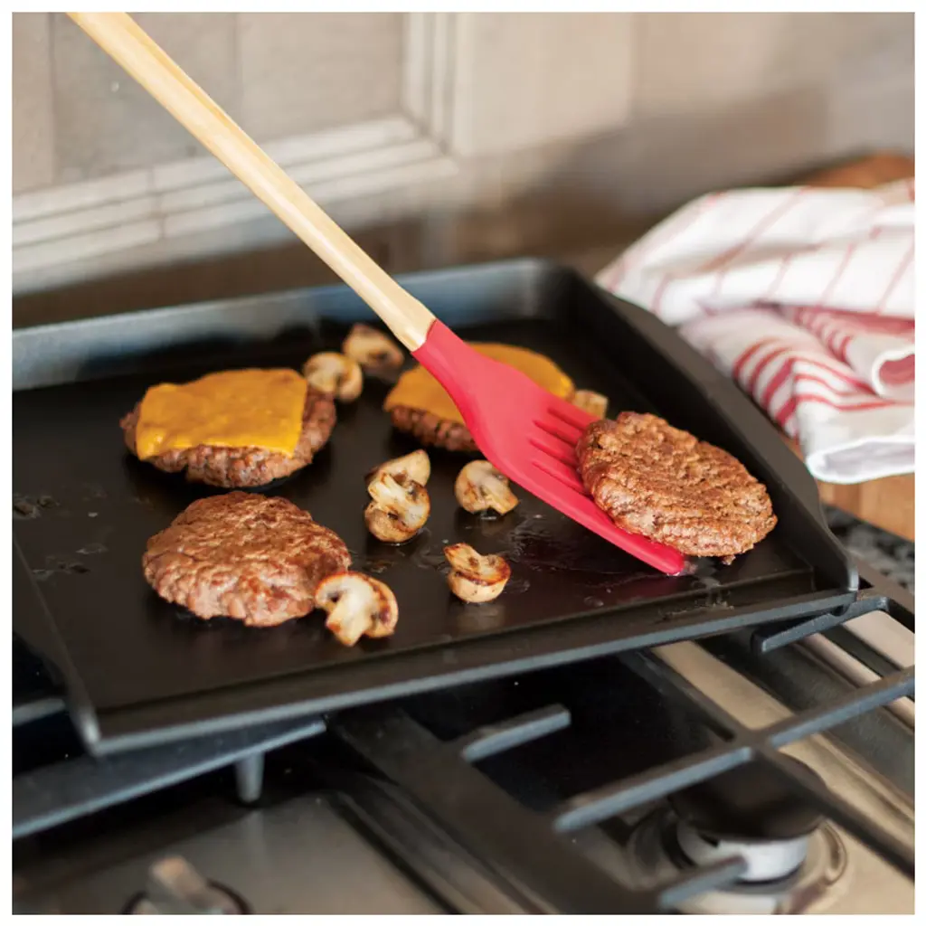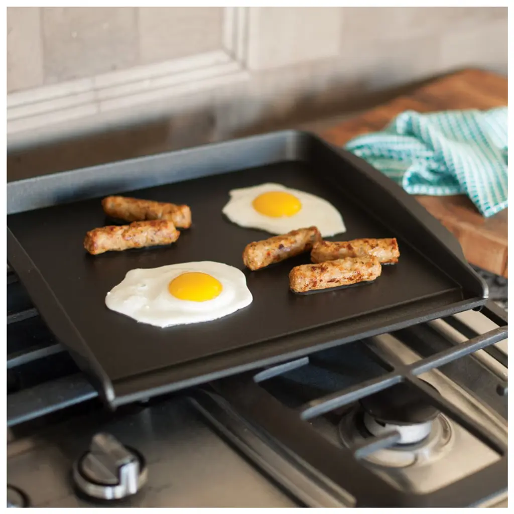 The Nordic Ware Aluminum Backsplash Stovetop Griddle stands as a heavy-duty cast aluminum cookware expressly fashioned for stovetop cooking. Its exceptional heat retention capability ensures every dish you prepare on this griddle, from pancakes to bacon, yields outstanding results consistently. Furthermore, the nonstick ceramic coating on the cookware facilitates effortless cleaning, while the distinctive back splatter design serves to safeguard your countertops or stovetops against untidy grease and spills.