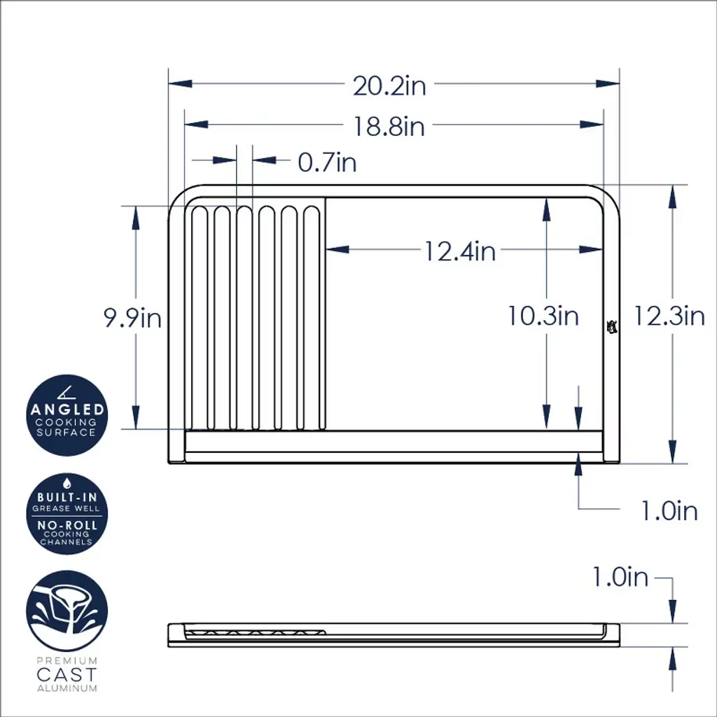 Take your stovetop cooking to the next level with the Basalt Dual Top Grill Griddle — a versatile, family-sized powerhouse designed for breakfast, lunch, and dinner. Featuring both a ridged grill zone and a smooth griddle surface, it lets you cook multiple foods at once — from sizzling proteins and seared veggies to perfectly fried eggs, hashbrowns, or toasted buns. Spanning two burners, this griddle offers maximum cooking capacity, making it easy to prepare meals for the whole family all on one pan. Built with durability and performance in mind, the Basalt Dual Top Grill Griddle boasts a two-layer ceramic nonstick coating. High sides help contain splatters, while a sloped surface and drip lip efficiently drain away excess oils and juices for healthier results. Crafted from cast aluminum, it heats evenly for consistent browning and searing. Compatible with gas, electric, and ceramic stovetops — and oven and grill safe up to 475°F — it’s your go-to solution for everything from hearty breakfasts to grilled dinners.
