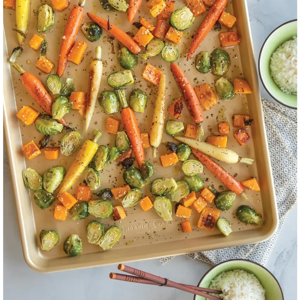 Make mega batches of cookies and bars with this extra large sheet pan. Fits all standard ovens.