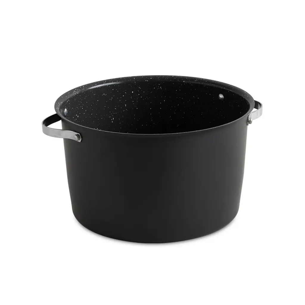 High-capacity, nonstick, and built for performance, the Verde 16 Qt Stock Pot with Lid is the ultimate kitchen essential for large-batch cooking, whether you're preparing soups, stews, pasta, or seafood boils. Constructed from heavy-duty aluminized steel and coated with a 3-layer ceramic nonstick surface, this pot ensures smooth food release and effortless cleanup. moreDesigned for even heat distribution, its induction-compatible base ensures precise cooking without hot spots. Riveted stainless steel handles with stay-cool silicone grips provide a secure and comfortable hold, even when handling large portions. Oven-safe up to 350°F, this stock pot is built for versatility. Paired with a USA-made stainless-steel lid featuring a sturdy imported cast knob for a firm grip, the Verde 16 Qt Stock Pot delivers premium performance for cooking on a larger scale.