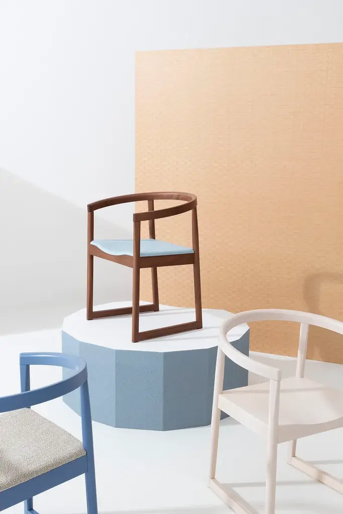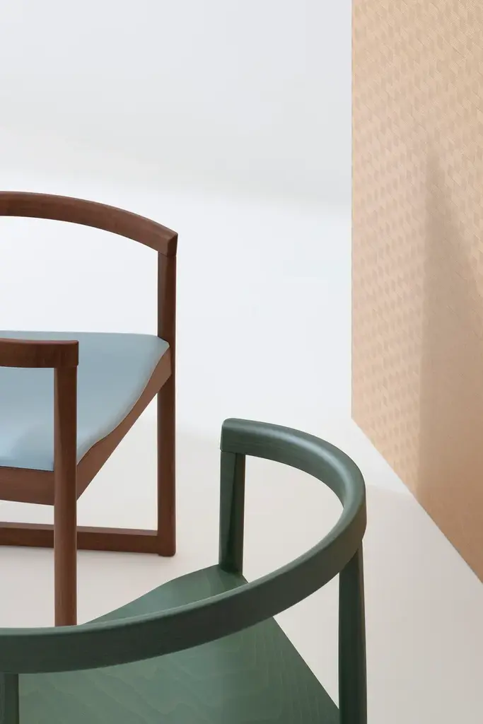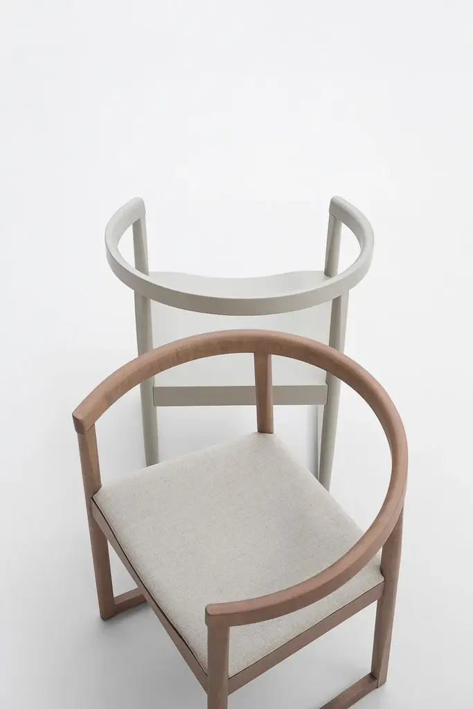 Nordica 601 is a chair with armrests, featuring a beech wood frame and an upholstered seat.Nordica is a collection that reinterprets an icon of Scandinavian design—the classic shell chair—renowned for its structural simplicity and elegant lines.While the form draws inspiration from Nordic style, the technique reflects Billiani’s tradition, featuring prominent joint cuts, a turned base, and increased thicknesses. The curved backrest, which extends to form the armrests, gives Nordica a distinct personality, providing just the right comfort for those who sit in it.