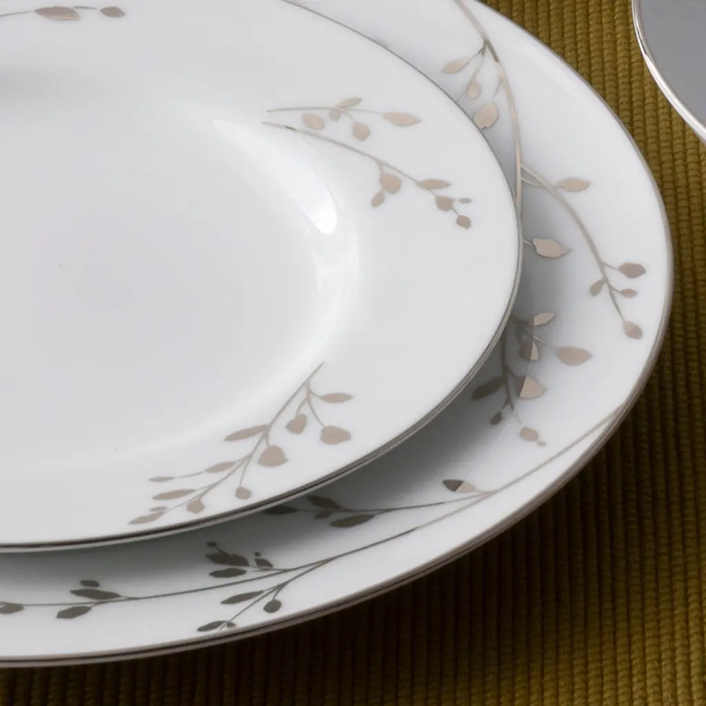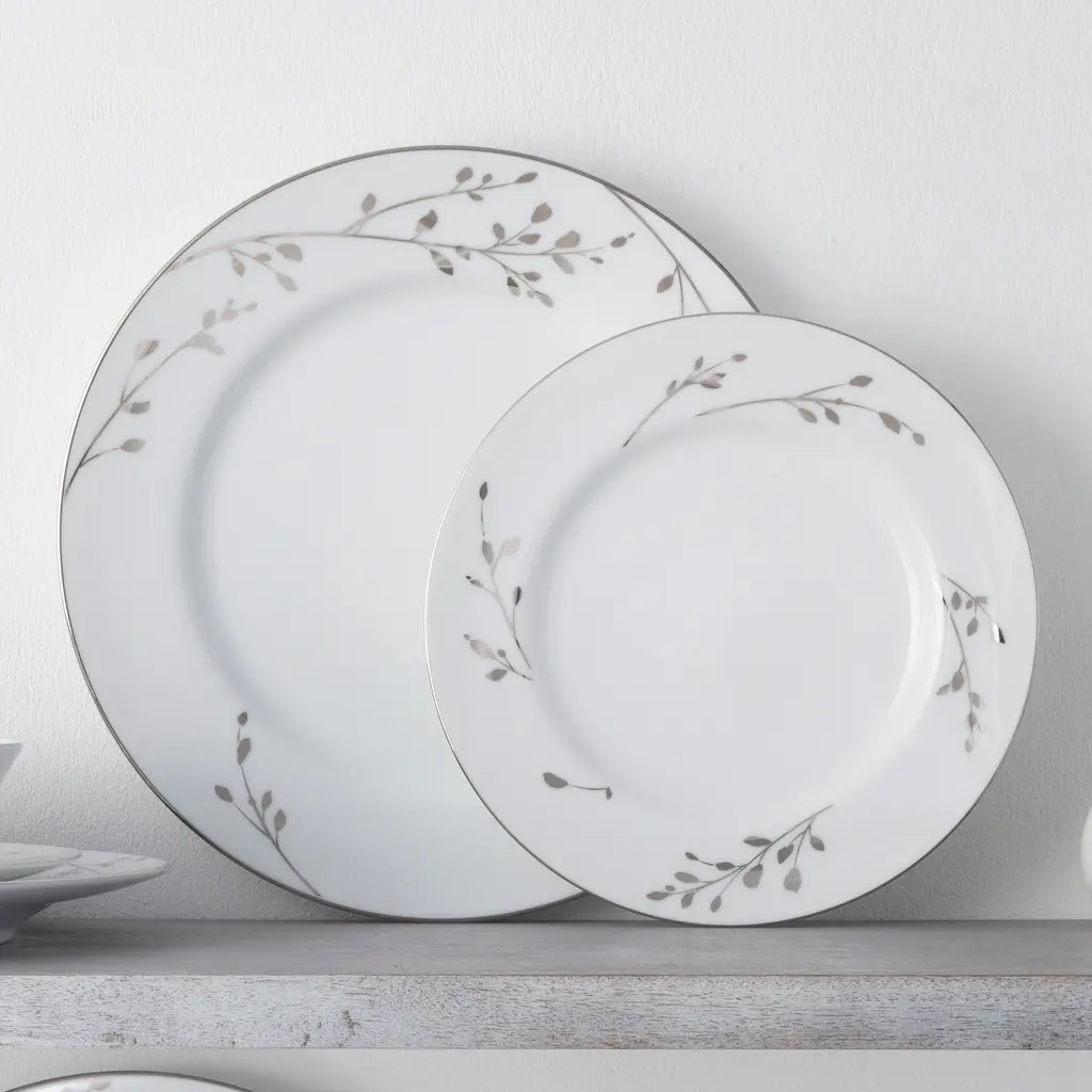 Birchwood brings modern elegance to the table. The delicate branches and budding twigs in platinum brings a natural element to a modern white porcelain dinnerware collection. The edge of each piece is adorned with a thin platinum band. Birchwood offers place setting components as well as an array of serving pieces and accessories. Birchwood is durable enough for daily use and is dishwasher safe!