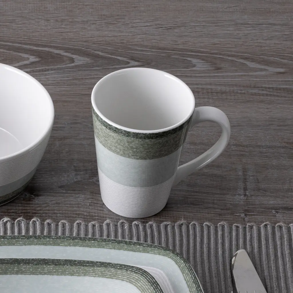 The Colorscapes Layers collection features multiple colors, modern design, and product durability. Each piece has a subtle texture of coiling concentric circles. In addition to the texture, items include a gradation of color bands in each colorway. The collection includes multiple colors to match any decor or aesthetic. All items in the Colorscapes Layers collection are crafted in durable white porcelain and are designed for daily use. The colors take inspiration from nature, calming hues are the name of the game with Colorscapes Layers. The Colorscapes Layers design combines a textured surface of concentric circles with striped color banding in varying shades.