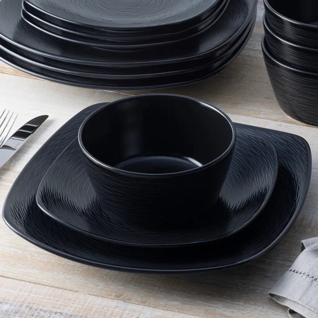 Noritake Colorscapes Swirl 4-Piece Square Place Setting, Service For 1 - Black