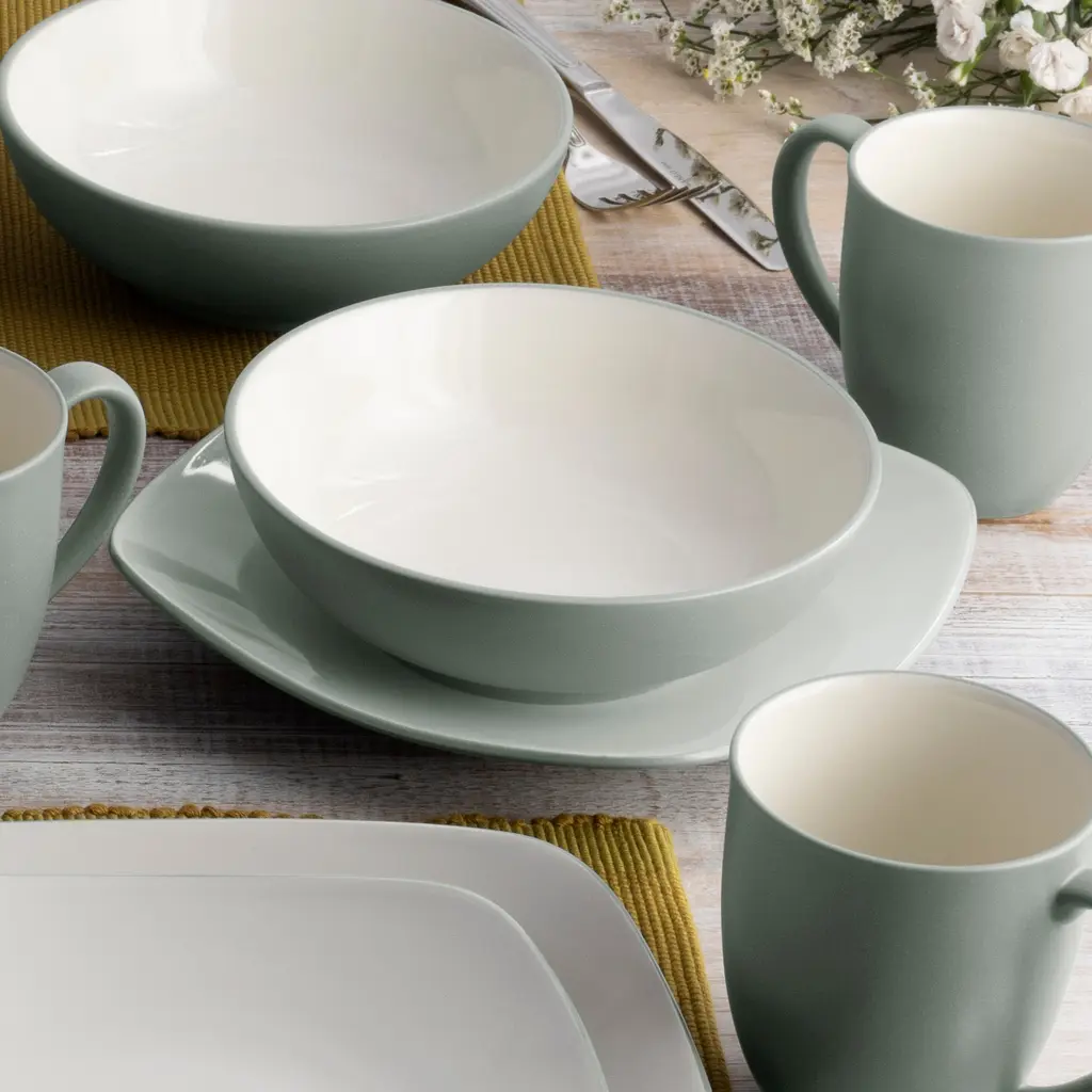 The Colorwave collection has been a customer-favorite, top-selling dinnerware collection for over 25 years! Distinct shapes and a rainbow of colors allow you to create a unique table setting by mixing and matching. Colorwave is designed with our customers in mind—with the goal of offering a wide array of colors and items for each person to build their own personalized table. There are 4 dinnerware place setting shape options: Coupe, Rim, Curve, and Square. Each place setting includes a dinner plate, a salad plate, a bowl, and a mug. Multiple set options are available in the Colorwave collection, including 12-piece, 16-piece, 20-piece, and 24-piece sets. Each set offers a different assortment of items to best fit an array of lifestyles. Items are also available individually, so that mixing and matching color and shape is easy! With over 20 items available per color, the Colorwave collection offers something for each part of the entire dining experience: from meal preparation to cooking, serving, and dining, then to storage and easy cleanup. Colorwave dinnerware is made of fine stoneware that is microwave and dishwasher safe. Colorwave items are available in a variety of shapes! Mix round and square items in multiple colors to truly create a personalized table. Colorwave offers a wide selection of items, from individual place settings to large serving pieces. The Colorwave collection offers something for everyone with the current available colors. Love classic neutrals? Try Graphite, Slate, or Sand. Looking to make a bold statement? Apple, Mustard, and Turquoise pop on the table and in your cabinets!