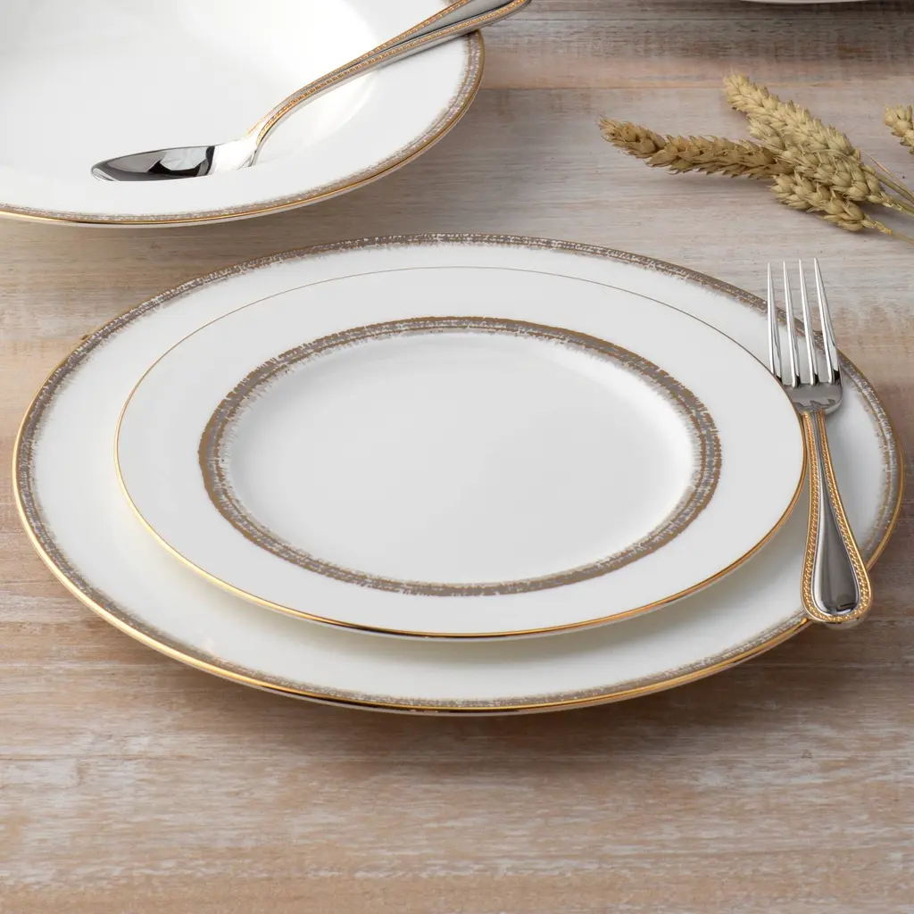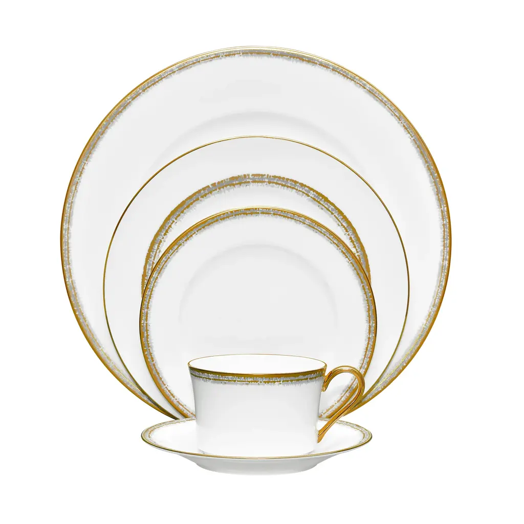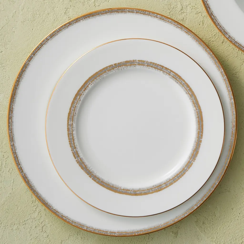 Haku features traditional gold banding, paired with a super-modern blurred edge featuring mixed metals on fine bone china. With a name derived from a Japanese proverb, Haku is designed to add value and joy to your meals. Haku offers place setting components as well as an array of serving pieces and accessories. Haku is suitable for everyday use and is dishwasher safe!