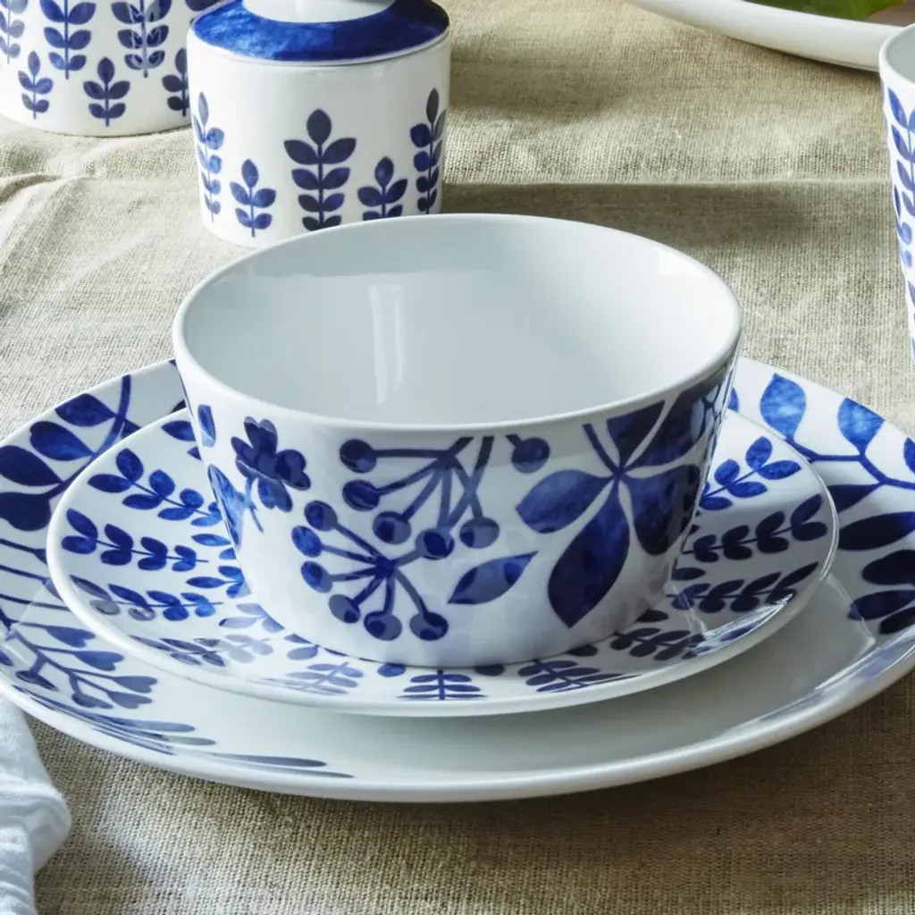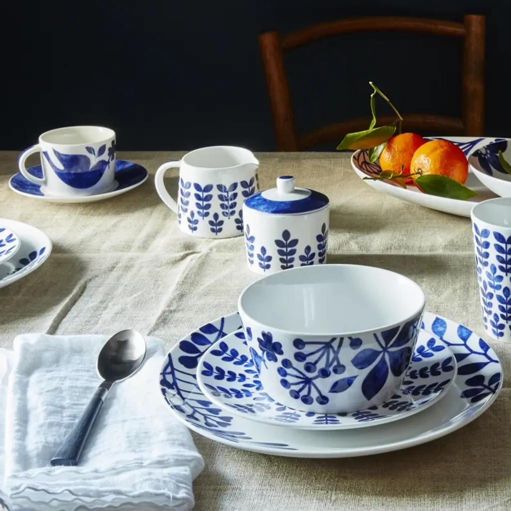Sandefjord is a Scandinavian-inspired design that is blooming with deep blue, whimsically-stylized floral motifs. Each piece incorporates these varied motifs in different ways that create a delightfully inspired mix-and-match place setting. The variation of design continues with the accessory pieces, resulting in a complete, yet eclectic, collection. Sandefjord offers traditional place setting components as well as serving pieces. This pattern is designed for daily use and is dishwasher safe.