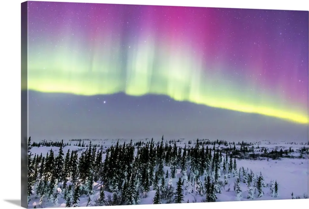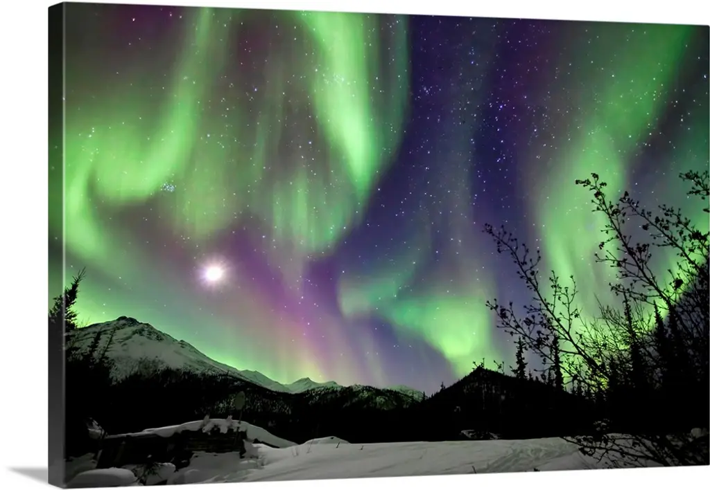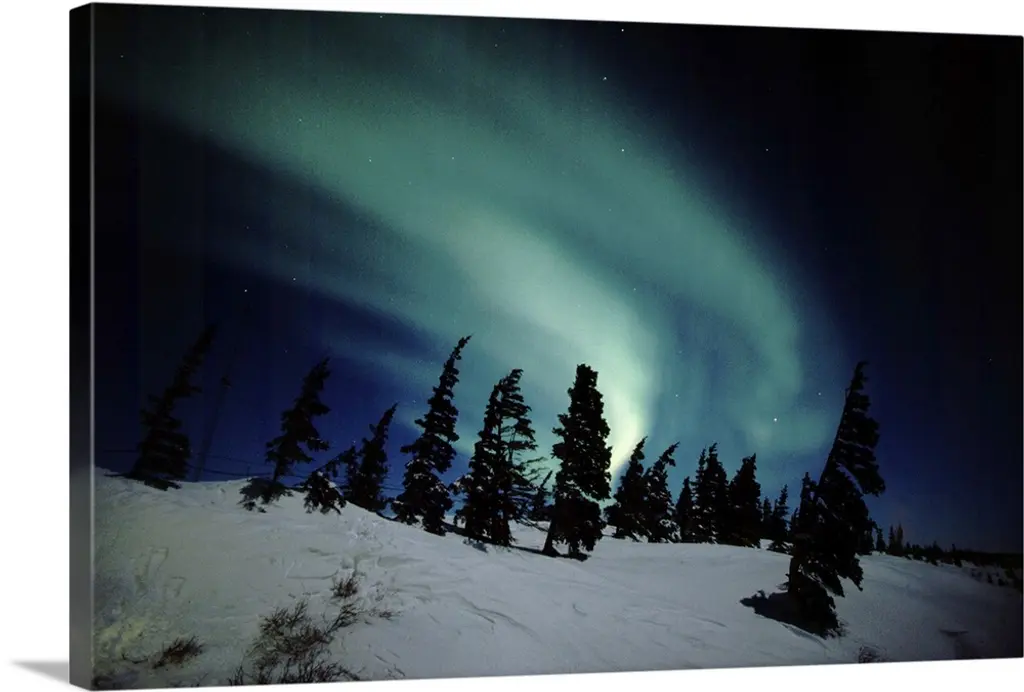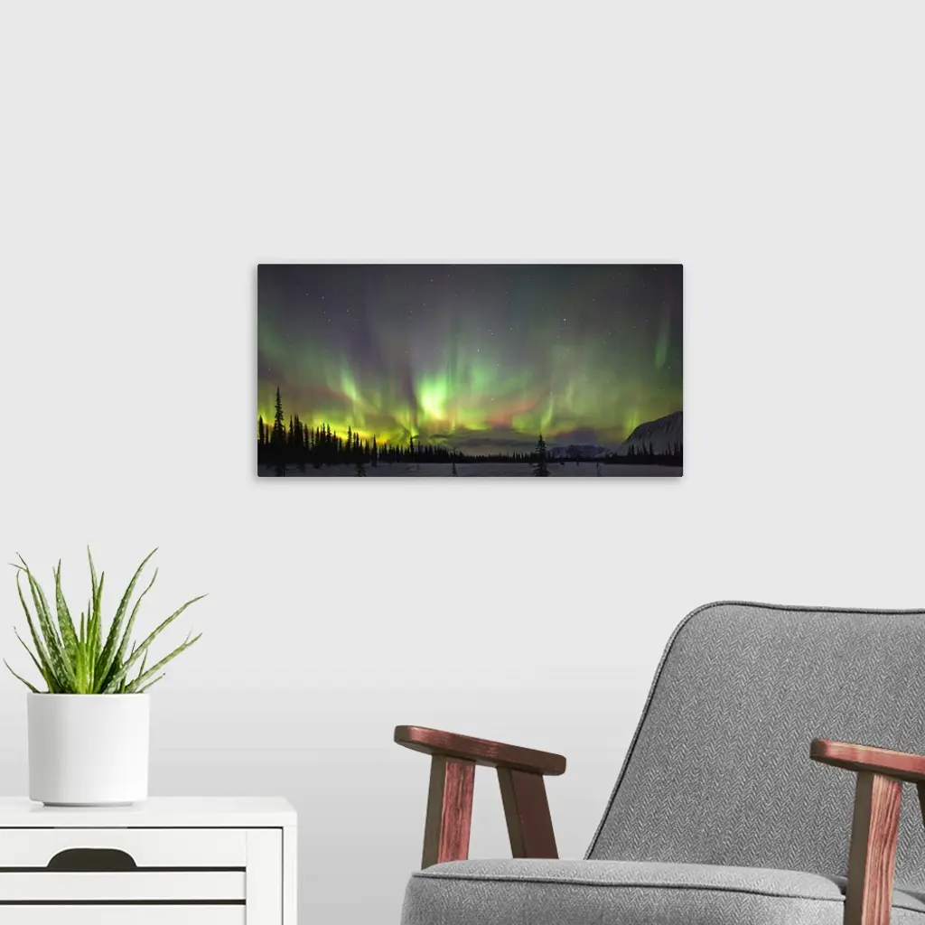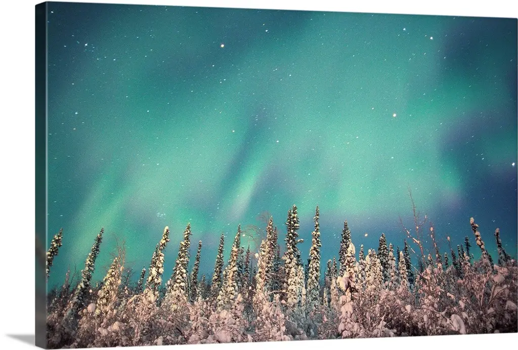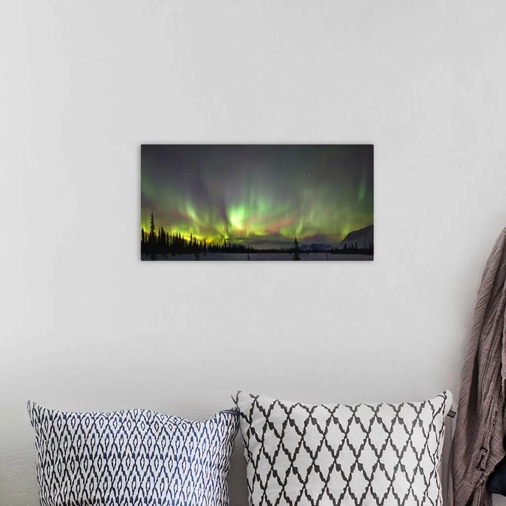 Northern Lights And Spruce Trees In Broad Pass, Southcentral Alaska wall art for home and office decor. Discover canvas art prints, photos, mural, big canvas art and framed wall art in GreatBigCanvas.com's varied collections.