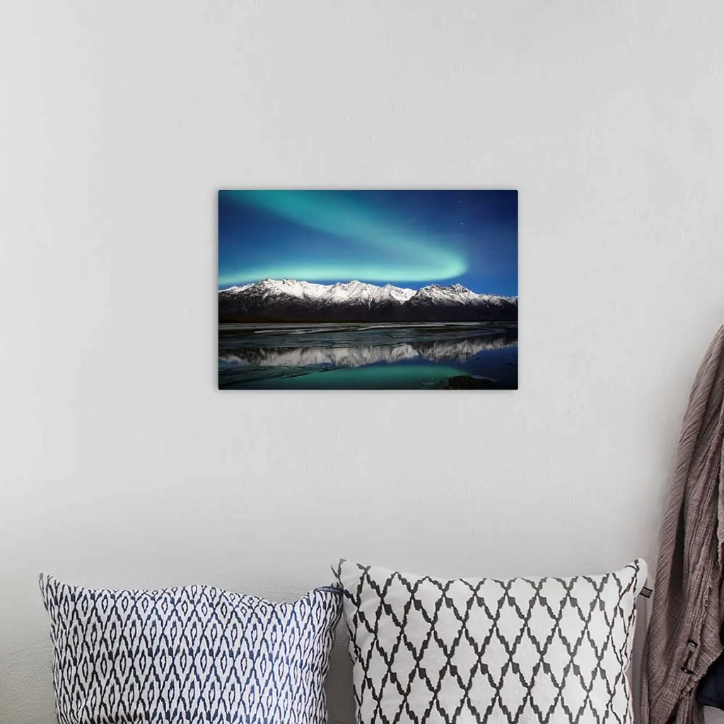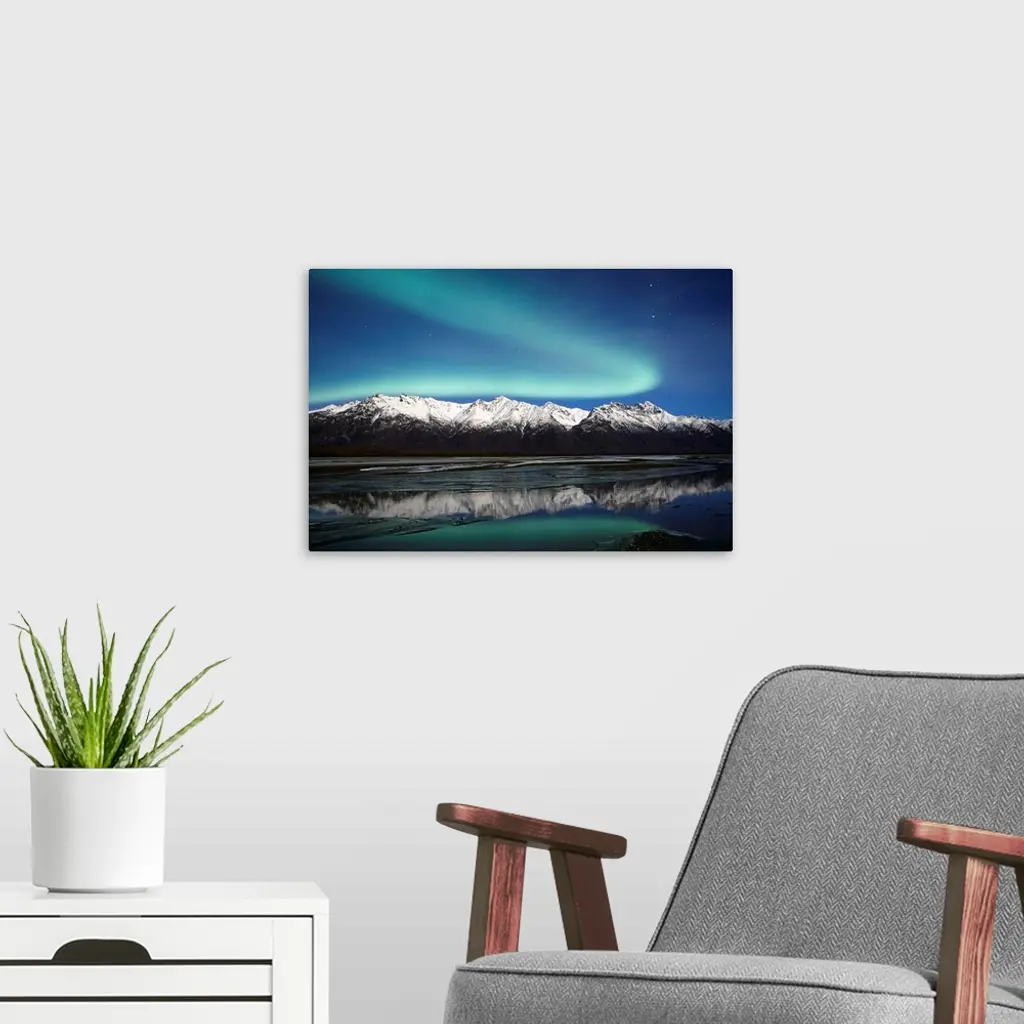 Northern Lights Over Chugach Mts Knik River Southcentral Alaska