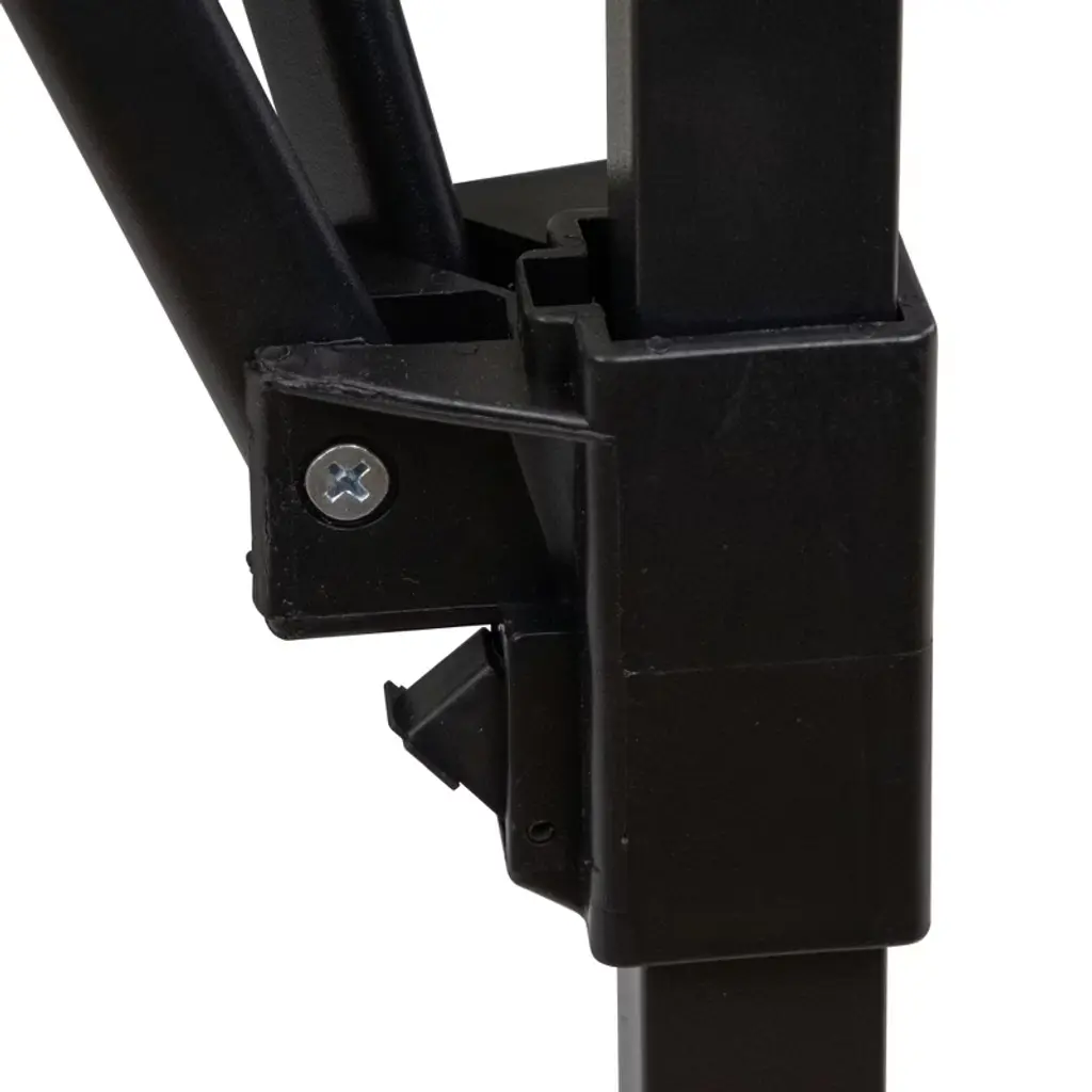 Stylish and practical steel canopy gazebo. Large enough to fit your patio set or several friends underneath. This gazebo comes with a carrying case for easy transport and storage. Perfect for tailgating at the game or parties in your yard. Features: Tube 20/20 - 25/25 0.6mm Black steel frame Canopy and cover made of 160 gram polyester Solid colored canopy with straight flap and trim Corner pole cover 10 x 20 mm ribs Center height is approximately 8 feet high Some quick and easy assembly required Provides protection from the elements Dimensions: 10' wide x 10' long Material(s): 160 gram polyester canopy/steel