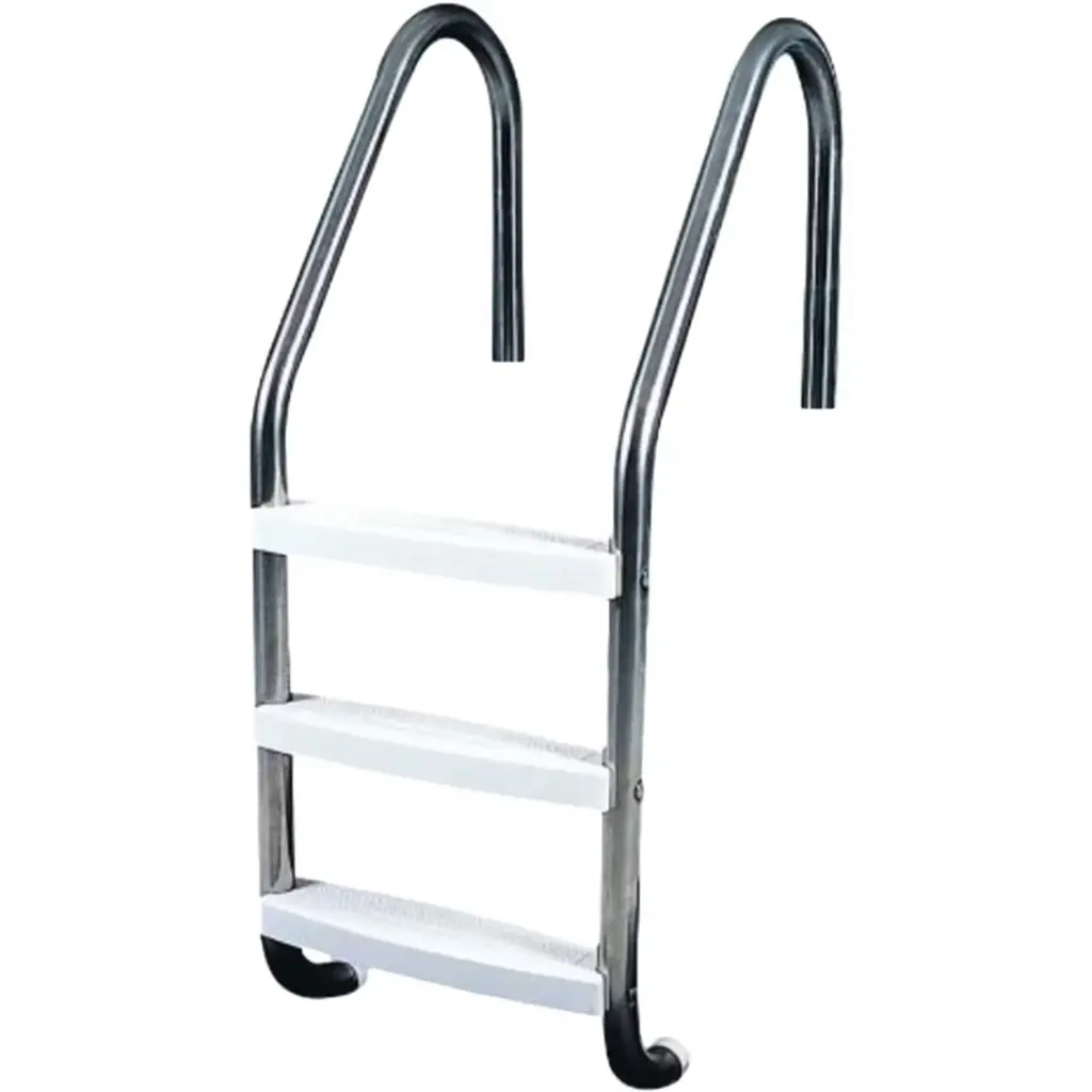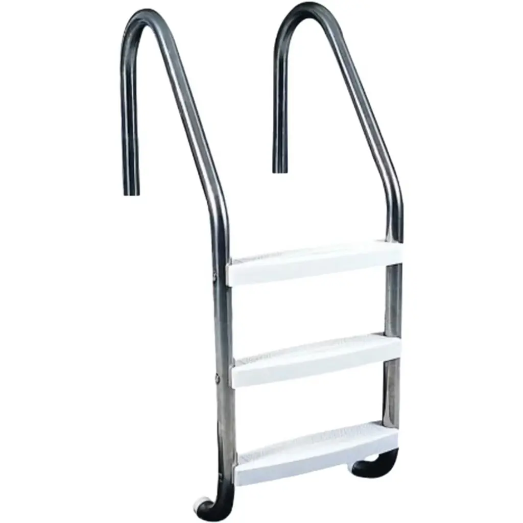 Making the perfect entryway into your brand new pool, this deck ladder adds a sturdy grip. Consisting of a rust-proof, three-step design, it is flat and easily accessible. The neutral shades ensure clear visibility even under water. Product Features: In-ground pool stainless steel ladder with heavy duty sure grip 3-step stainless steel ladder with white plastic steps Never rust, molded plastic steps Some assembly required Dimensions: 53" high x 24.5" wide Pole: 2" diameter Material(s): stainless steel/plastic Note: anchors sold separately