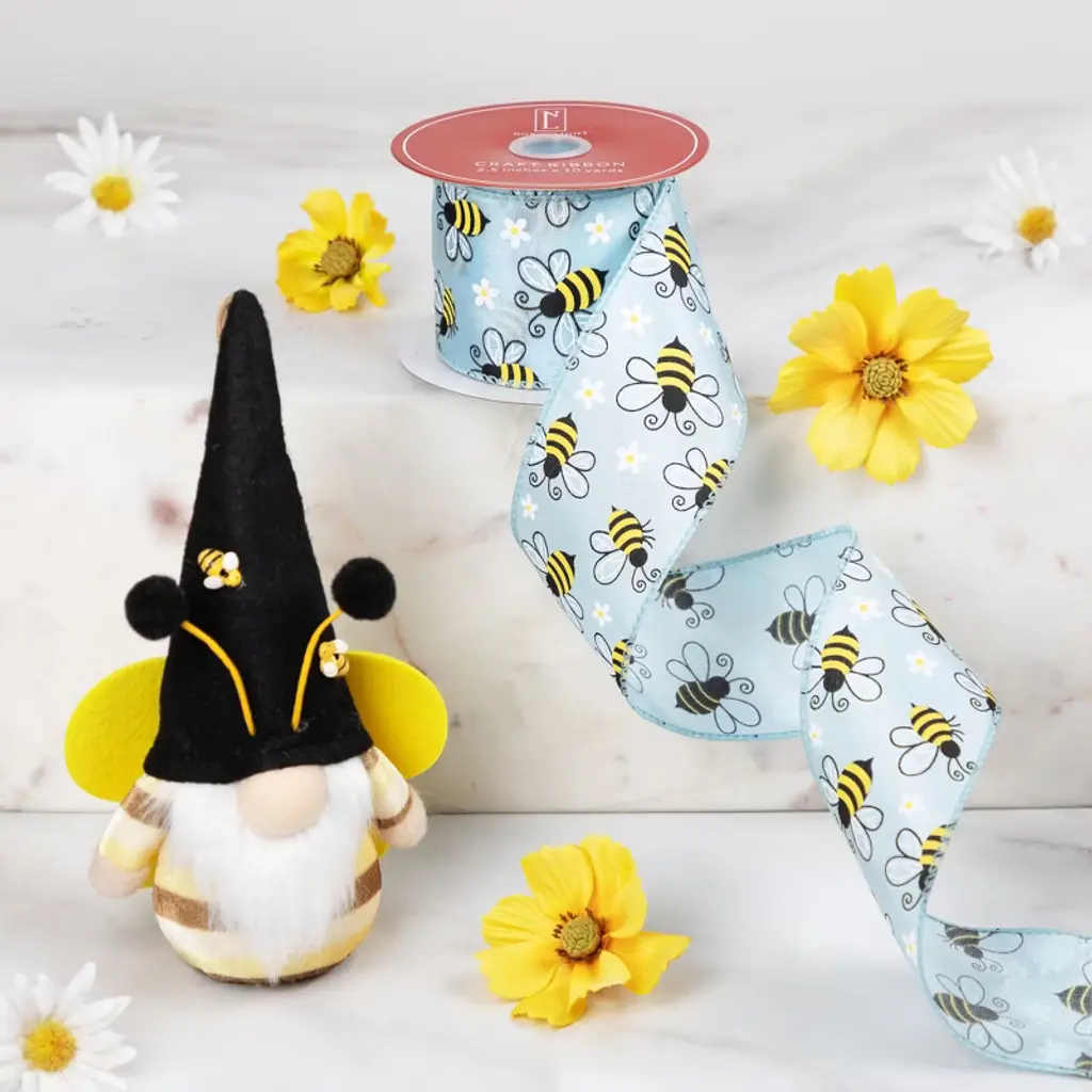Product Features: Blue spring crafting ribbon Features a bumblebee and daisy flower design Design is on one side only Sewn wire edged ribbon allows you to bend and shape your creations to decorate with ease Ribbon comes on (1) spool Recommended for indoor use only Dimensions: 2.5" wide x 10 yards in length Material(s): polyester/wire