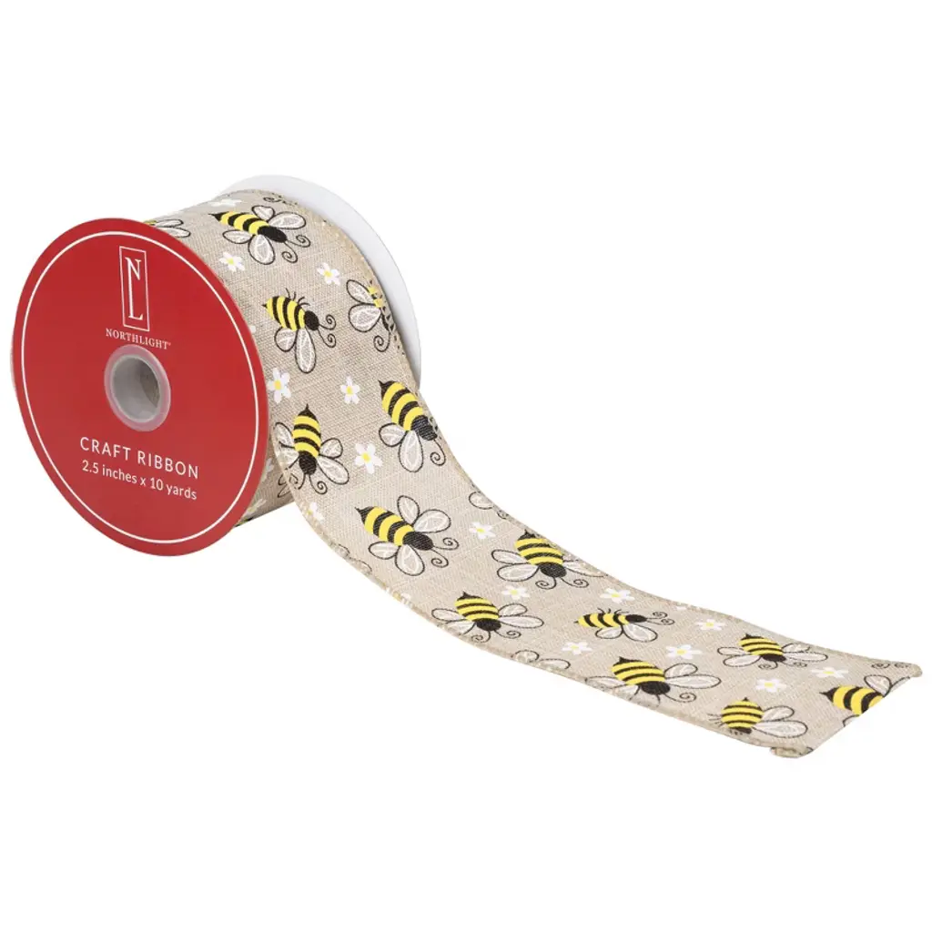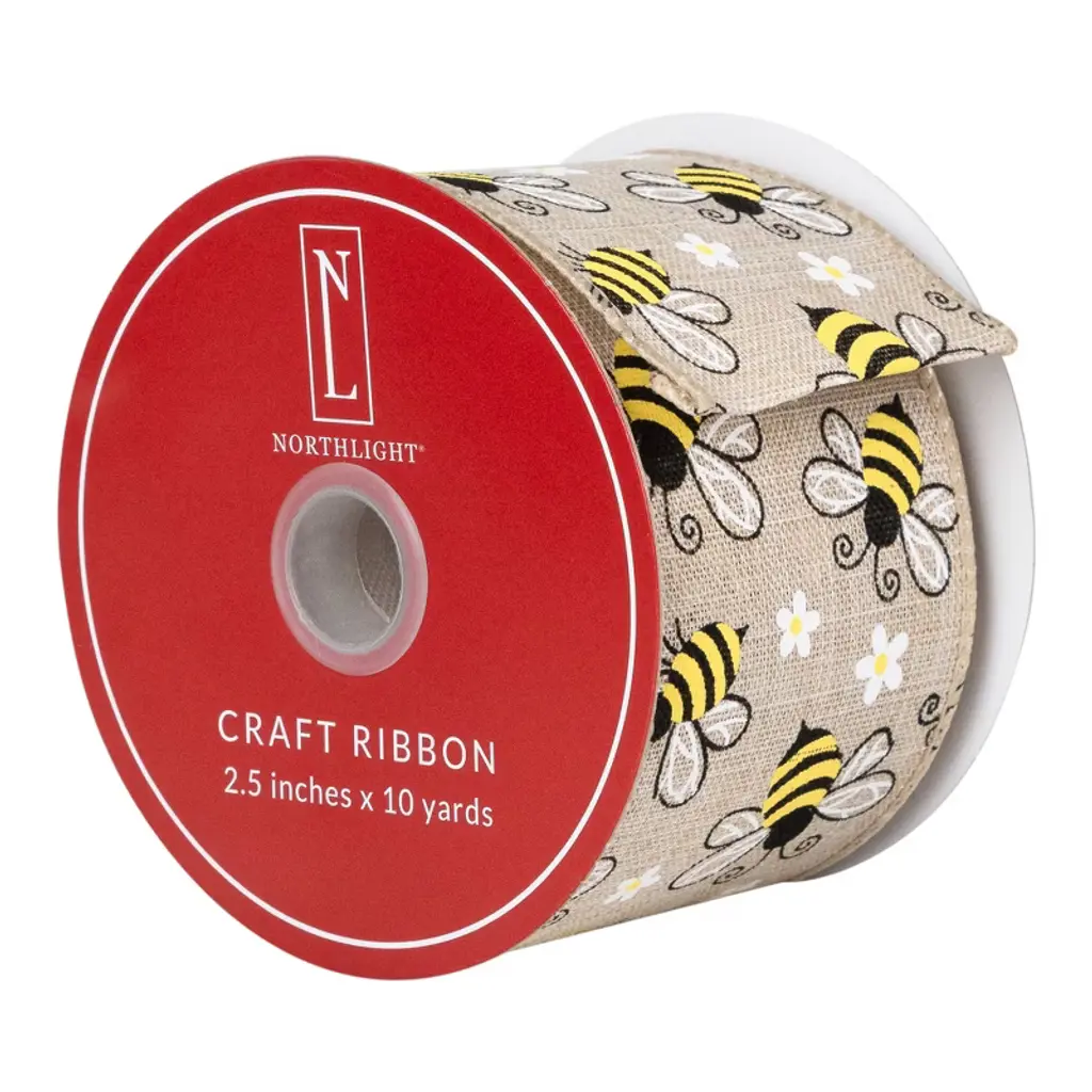 Northlight Bumblebee Design Wired Spring Craft Ribbon - 2.5" X 10 Yards - Natural Burlap