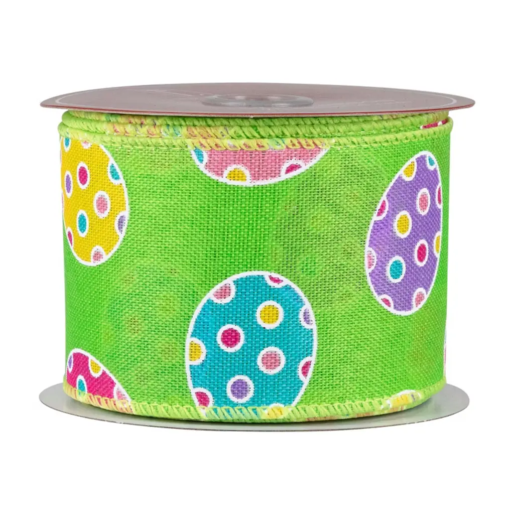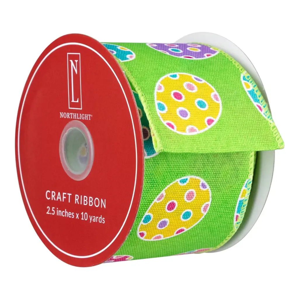 Northlight Easter Egg Design Wired Spring Craft Ribbon - 2.5" X 10 Yards - Green