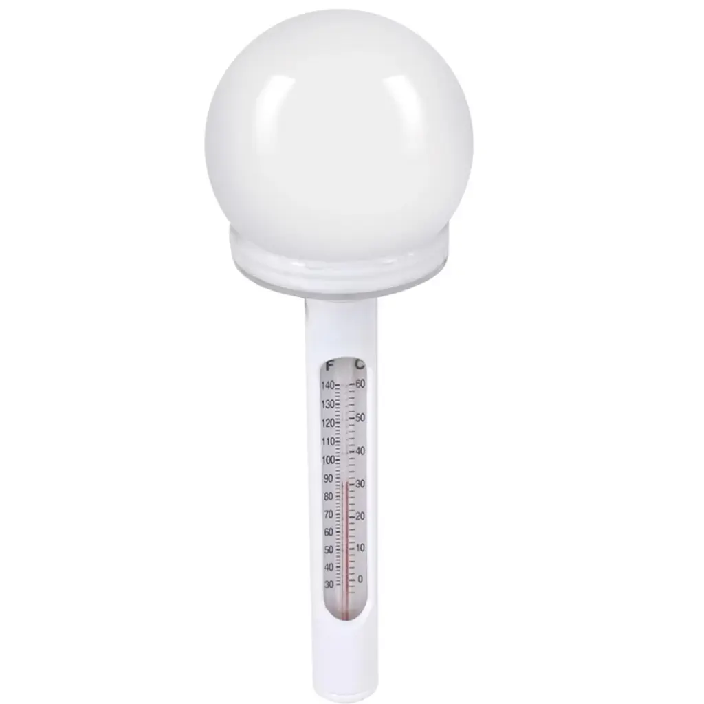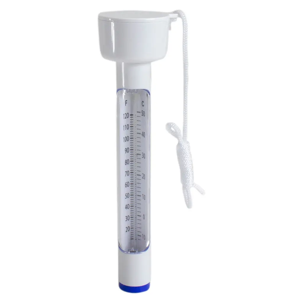Easily keep track of your pool or spa temperature with this standard, easy-to-read thermometer. The thermometer features accurate, reliable temperature readings. It is an integrated pocket for water sample injection-mold. Product Features: Durable nylon anchoring cord Reads both Fahrenheit and Celsius Recommended for outdoor use only Dimensions: 6.5"H x 1.5"W Material(s): heavy duty plastic
