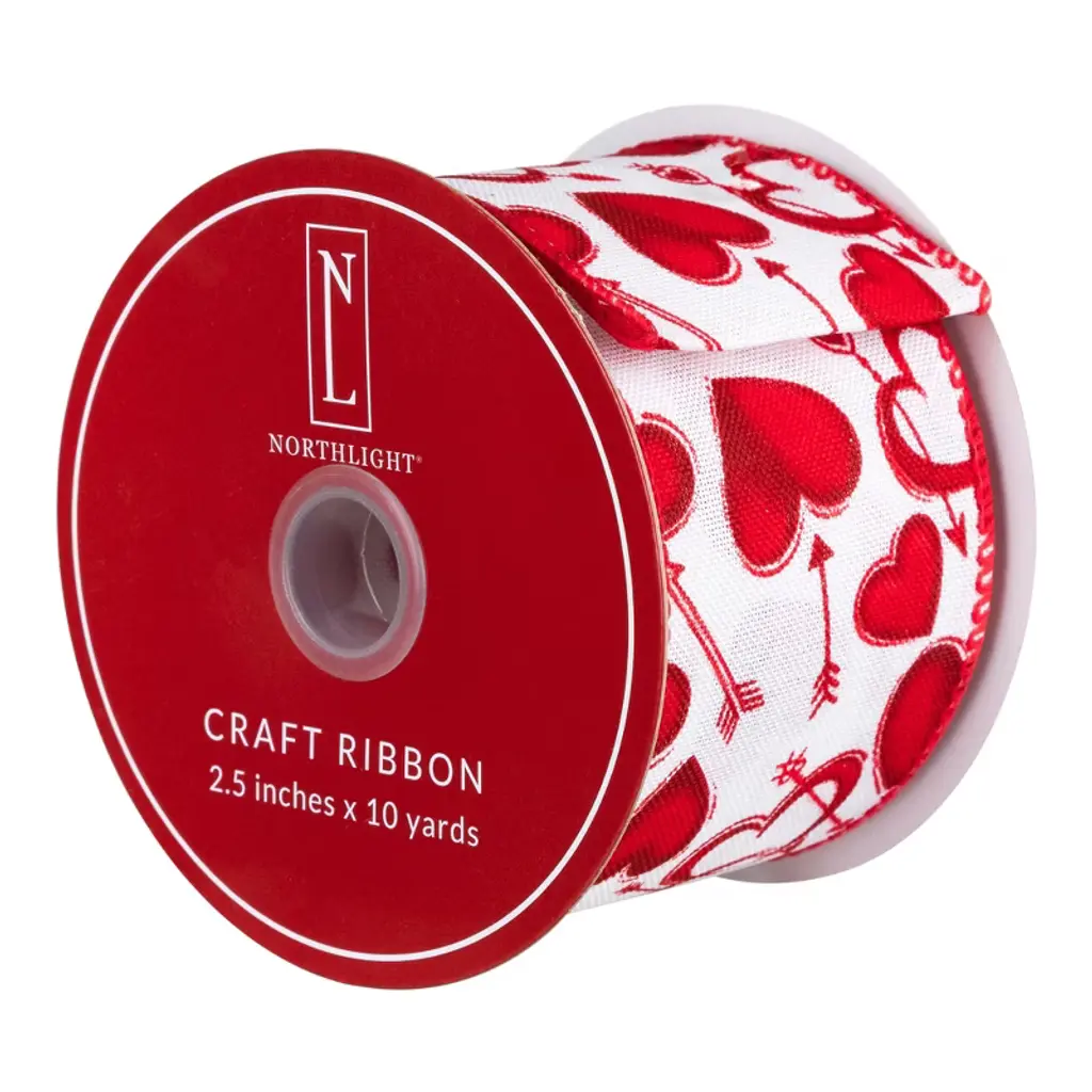 Northlight Hearts Valentine's Day Wired Craft Ribbon - 2.5" X 10 Yards - White And Red