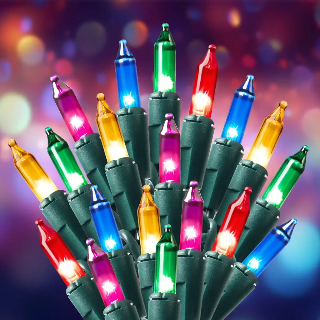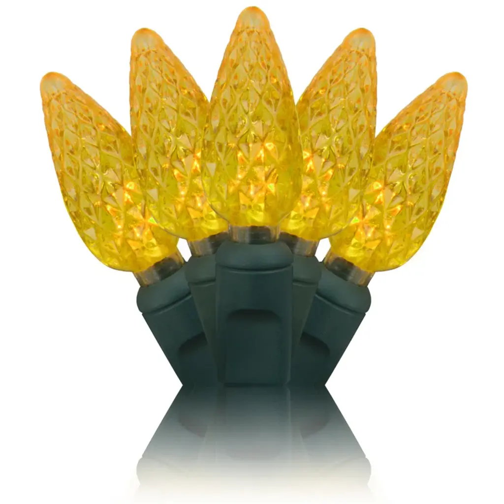 Add some traditional hues to your holiday decor with these festive candy cane inspired red and white C9 holiday lights. Their easy glow is sure to bring some sparkle to your holiday tree, garland or wreath. These universal lights can also be used on valentine's day, mother's day or at any special event. Product Features: Color: opaque white and red bulbs / green wire Number of bulbs on string: 25 Bulb size: C9 (3" high x 1.25" diameter) Spacing between each bulb: 12" Lighted length: 24' Total length: 25' 6" lead cord 6" tail cord Additional Product Features: Each light has a clip on their base so you can easily attach the lights to your tree or other desired surfaces Fully assembled Bulbs easily screw in and out If one bulb burns out, the rest will stay lit Contains end-to-end connectors which allows you to connect multiple lighted items together (not to exceed 210 watts) UL listed for indoor or outdoor use Wire gauge: 20 120 volts, 60 hertz, 1.46 amps, 175 watts Material(s): glass/plastic/wire