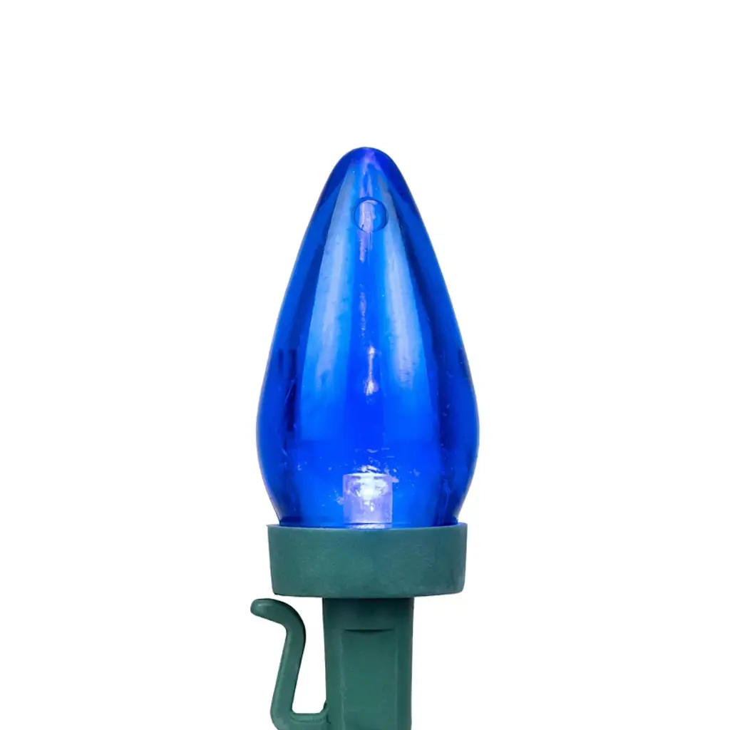Add a festive touch to your holiday or patriotic celebrations with these LED C7 holiday lights in vibrant red, white, and blue. Featuring 25 energy-efficient LED bulbs on a durable green wire, this light set is perfect for decorating trees, bushes, and more. The bulbs use 90% less energy, stay cool to the touch, and are non-glass, making them safe and long-lasting. If one bulb burns out, the rest will stay lit, ensuring a hassle-free experience. Product Features: Color: red, white, and blue bulbs / green wire Number of bulbs on string: 25 Bulb size: C7 Bulb type: LED Spacing between each bulb: 8” Lighted length: 16’ Total length: 17’ 6” lead cord 6” tail cord Additional Product Features: LED lights use 90% less energy Durable non-glass replaceable bulbs Cool to the touch Strand contains a rectifier which eliminates the shimmer and shake in the light set UL certified and approved for indoor or outdoor use If one bulb burns out, the rest will stay lit Each bulb is equipped with a clip on the base to easily attach the lights to trees, bushes, and more Comes with a replacement bulb and spare fuse Contains end-to-end connectors which allow you to connect up to 87 sets together (not to exceed 210 watts) Wire gauge: 22 120 volts, 60 hertz, 0.02 amps, 2.4 watts