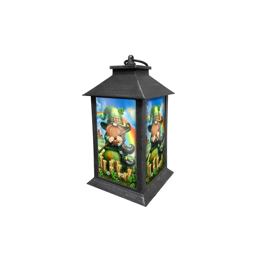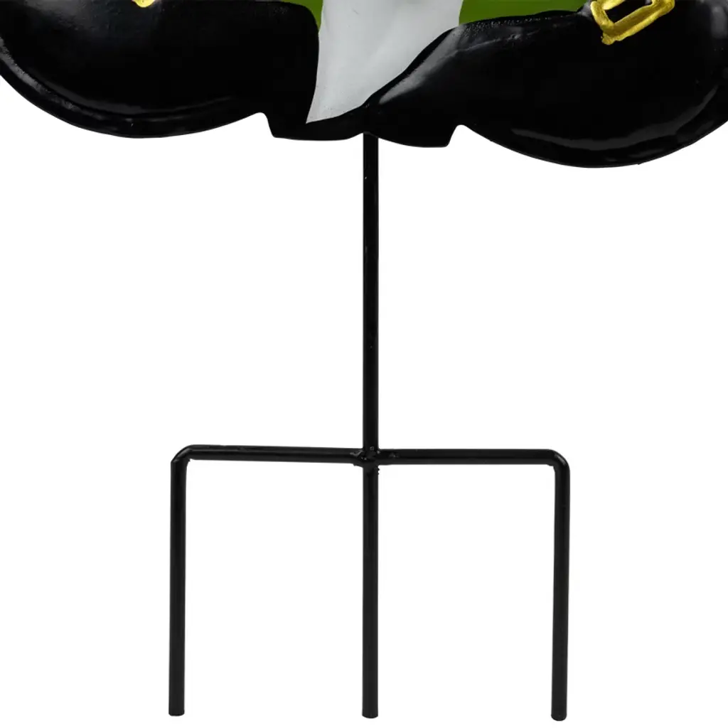 Bring the luck of the Irish to your home with this delightful set of 2 St. Patrick's Day yard signs! One gnome features a pointy hat adorned with shamrocks and holds a colorful rainbow, symbolizing hope and good fortune. The other gnome wears a striped pointy hat and clasps a gleaming pot of gold, promising prosperity and abundance. Let these whimsical yard signs usher in the spirit of St. Patrick's Day. Product Features: Set of 2 St Patrick's Day gnomes yard sign One is wearing a green striped hat and holding a pot of gold One is wearing a green hat with shamrocks and holding a rainbow M-shaped ground stakes included No assembly required Perfect for decorating your garden, along a pathway or by the front door For outdoor use only Dimensions: 27.5"H x 9"W x .25"D Material(s): metal