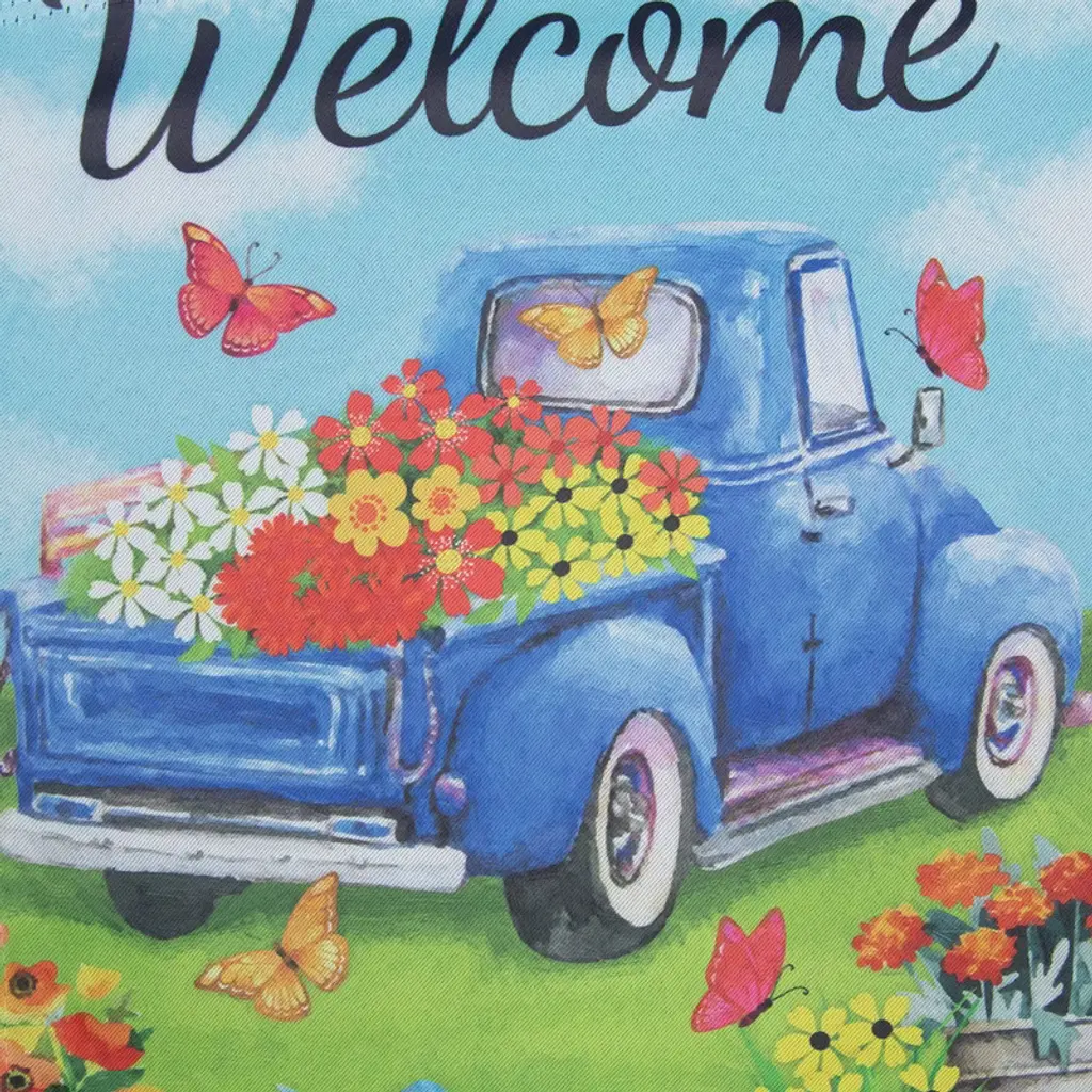 Northlight Welcome Blue Pickup Truck With Spring Flowers Outdoor Garden Flag 12.5" X 18"