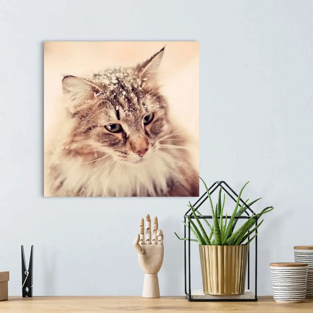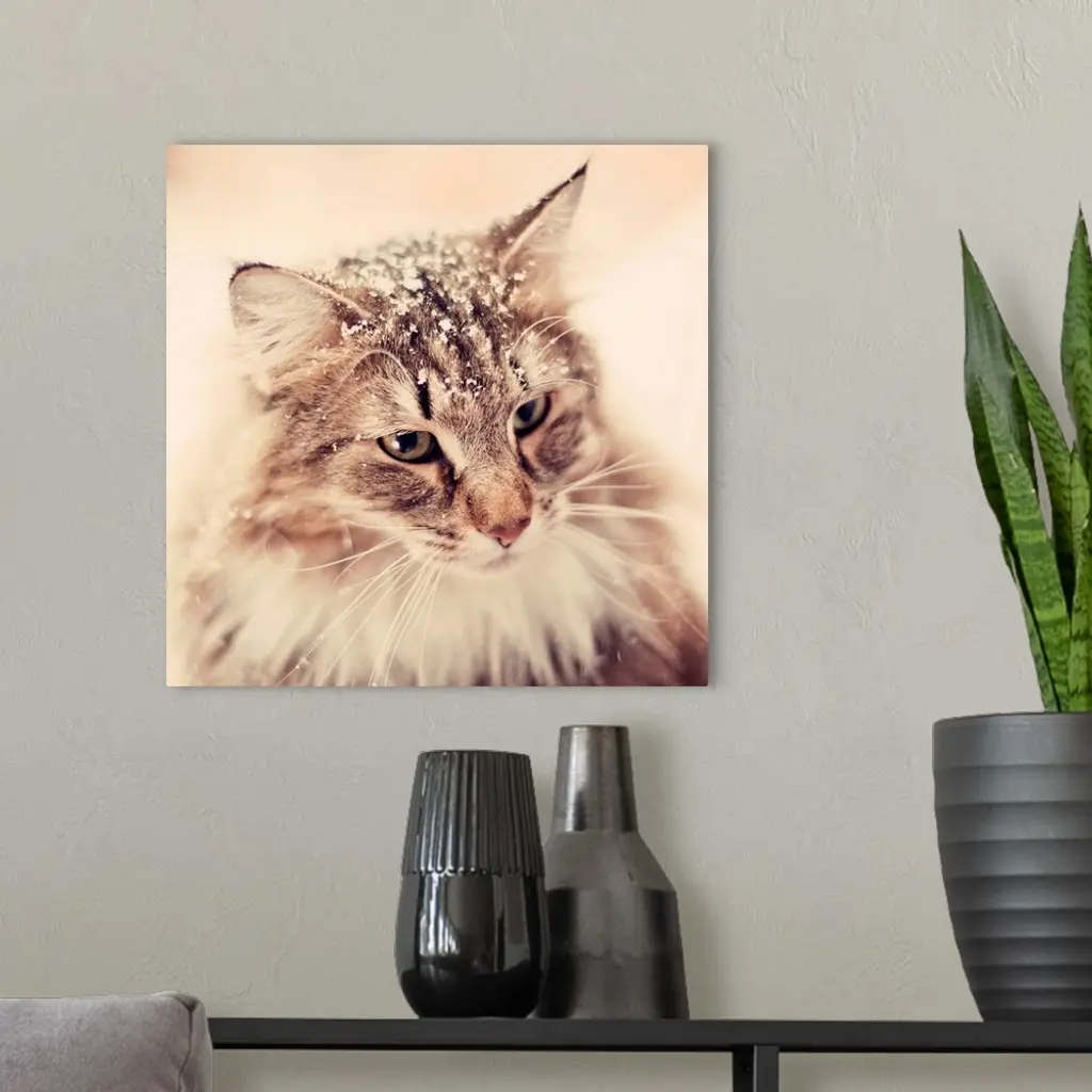 Norwegian Forest Cat enjoying the snow. wall art for home and office decor. Discover canvas art prints, photos, mural, big canvas art and framed wall art in GreatBigCanvas.com's varied collections.