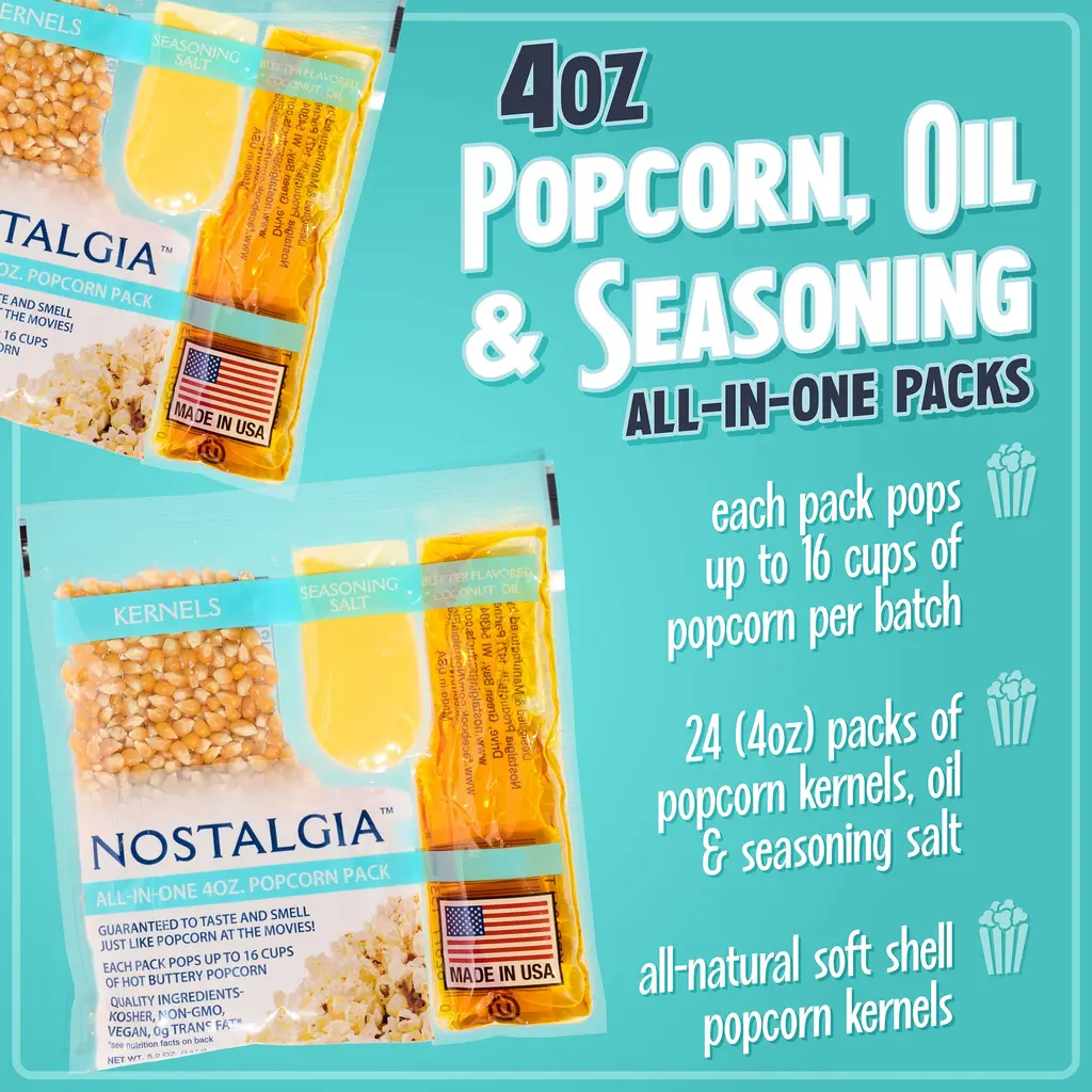 Nostalgia Best Tasting Premium 4-Ounce Popcorn, Oil & Seasoning Salt All-In-One Packs - 24 Count - White