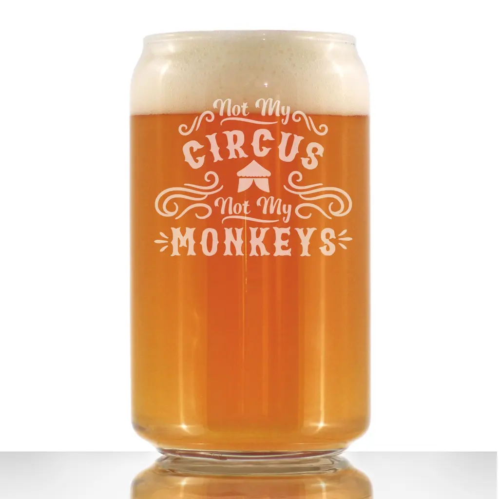 Not My Circus Not My Monkeys - Beer Can Pint Glass - Retirement Or Coworker Leaving Gifts - 16 Ounce - Clear