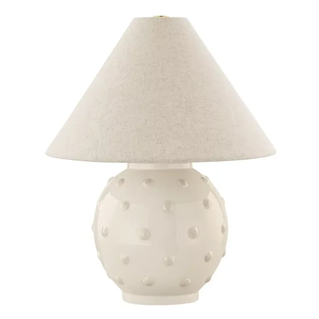 Brighten your home with the elegance of this notched table lamp. The modern notched base, finished in cool white and gray tones, pairs beautifully with the linen shade and sturdy wire frame for a timeless look. When illuminated, the warm white light enhances your space, creating a cozy ambiance. Perfect for a bedside table, living room, or office, this lamp adds both style and functionality to any room. Product Features: Showcases cool white and gray tones Notched base design Round hardback drum shade Lamp uses (1) standard 80-watt bulbs (not included) UL listed for indoor use only Dimensions: 18.5"H x 12.5"W x 8.25"D Material(s): ceramic/linen