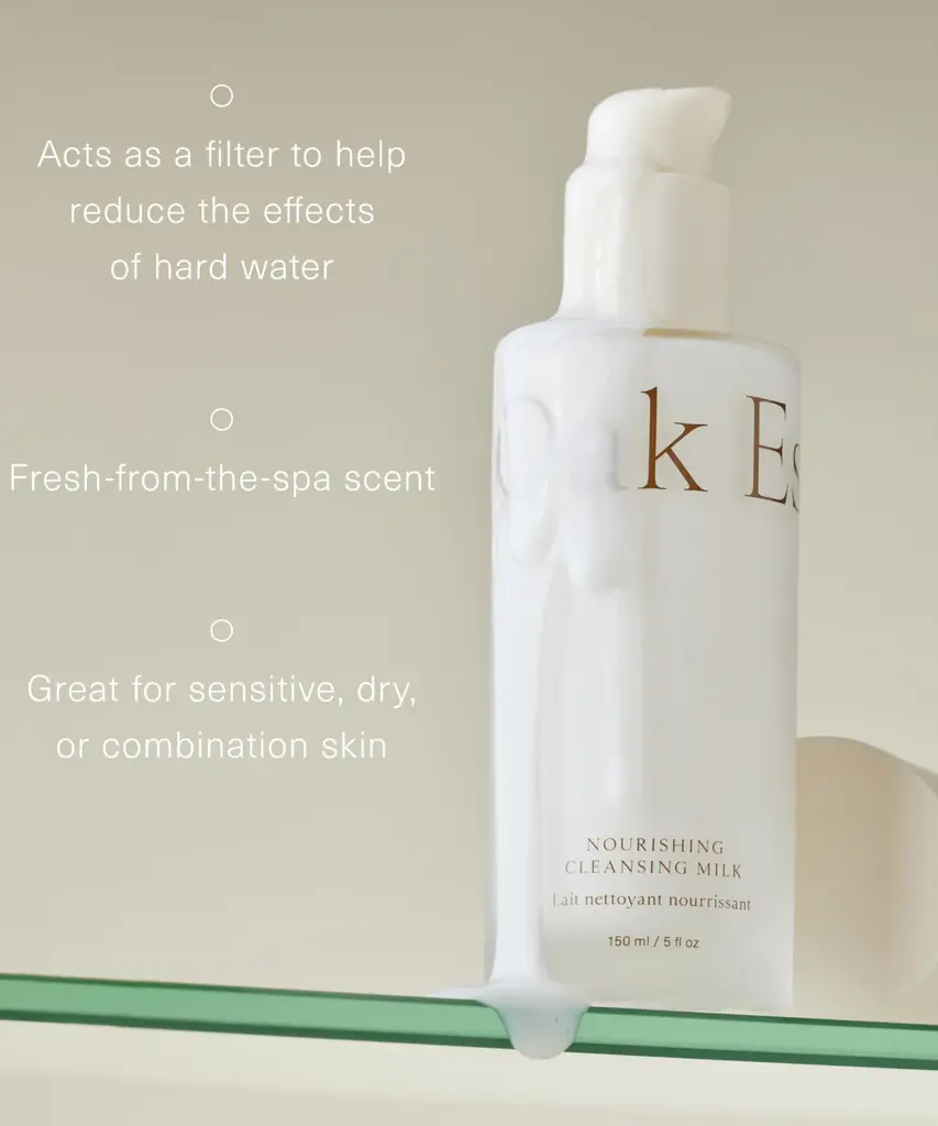 Nourishing Cleansing Milk RTL 150ml / 5 oz A creamy cleansing milk with Oat Amino Acids that gently sweep away dirt, oil, and makeup without over-drying skin. It helps to balance skin’s pH and acts as a filter to help reduce the effects of hard water while supporting skin’s natural lipid layer. Leaves skin feeling soft, nourished and refreshed with a fresh-from-the-spa scent. Great for sensitive, dry, or combination skin. To learn more about Oak Essentials, visit OakEssentials.com.