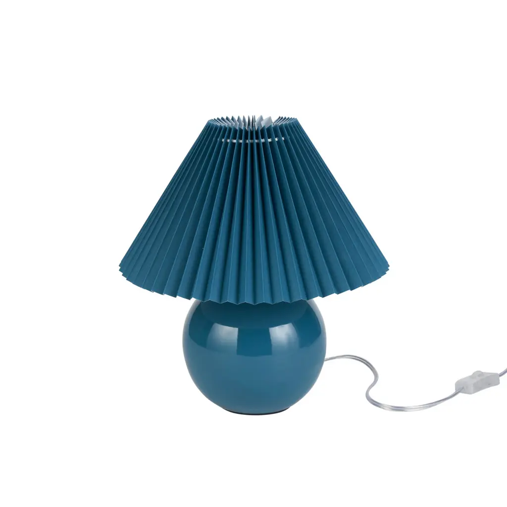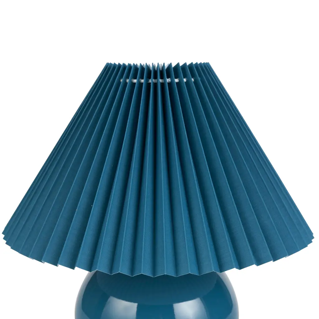 Illuminate your living space with this minimalistic ceramic table lamp. Boasting a rich glossy finish, the round base complements the modern pleated shade, creating a harmonious blend of classic and contemporary styles. Perfect for adding a vibrant pop of color to your home decor, this chic lamp is not only a functional lighting solution but also a decorative piece.Features: