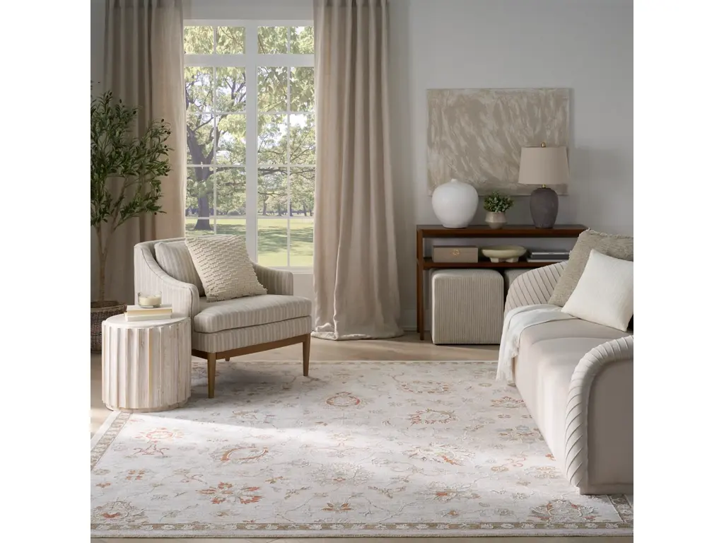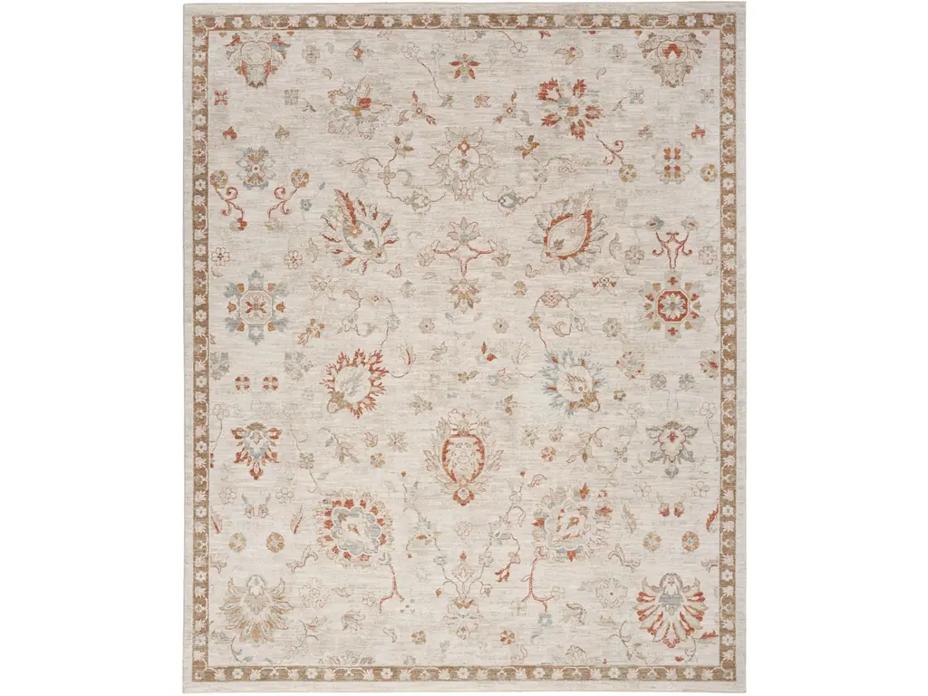 Inspired by a classic Persian garden design, this vintage-style ivory rug from the Infinite Collection brings timeless charm to your surroundings. Large, stylized blossoms adorn its surface, which are made subtle by a lightly distressed palette that easily complements a variety of decor styles including boho and modern farmhouse. Made from durable polyester and polypropylene fibers with an incredibly soft texture that's easy to clean ideal for busy households with pets and young children. OEKO-TEX certified free of harmful chemicals.