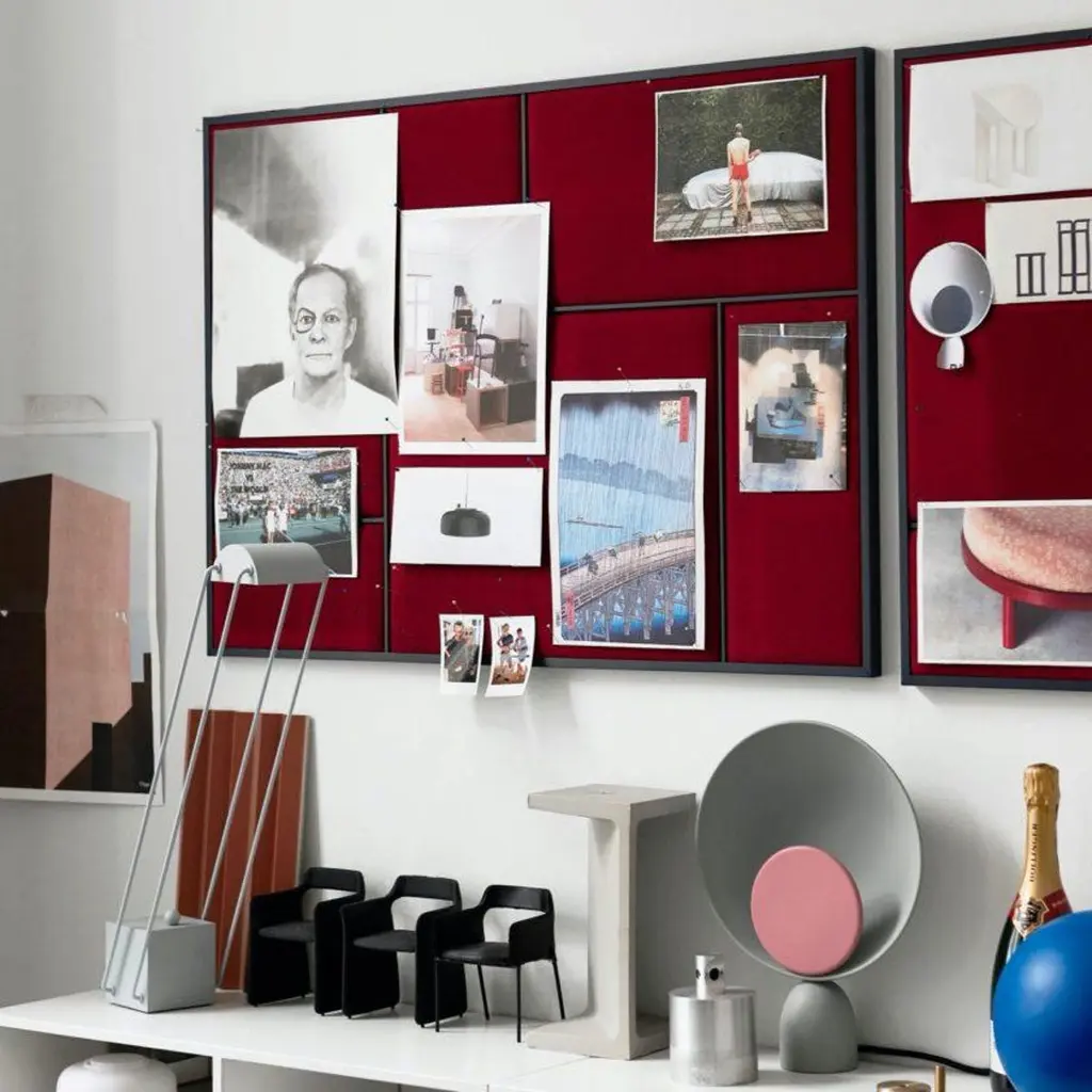 Nouveau medium pin board in navy blue & navy blue frame by All The Way To ParisThe foam and textiles have been specially engineered to provide soundproofing. Including 2 hanging brackets. Hang them, turn them and make them your own. The pin boards are designed as a flexible module system in three sizes. Hang them in your home, pin your memories and create the visual image you want. These pin boards also have an acoustic sound absorbing effect, so they can be used in offices, at home or maybe at a recording studio.Additional Information:Material: Upholstery, foam, steelFabric colour: Navy BlueFrame: Navy blue powder coated steel Dimensions: W 62.3 x D 2.5 x H 62.3 cmAvailable in other fabric colour options: Oyster grey and rouge noirAvailable in other frame options: BrassAvailable in other size options: Small, large