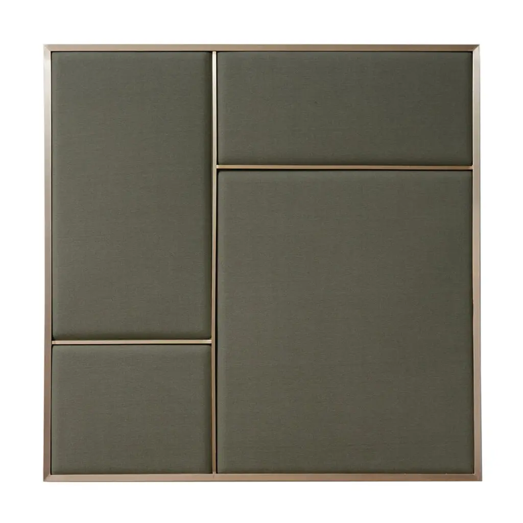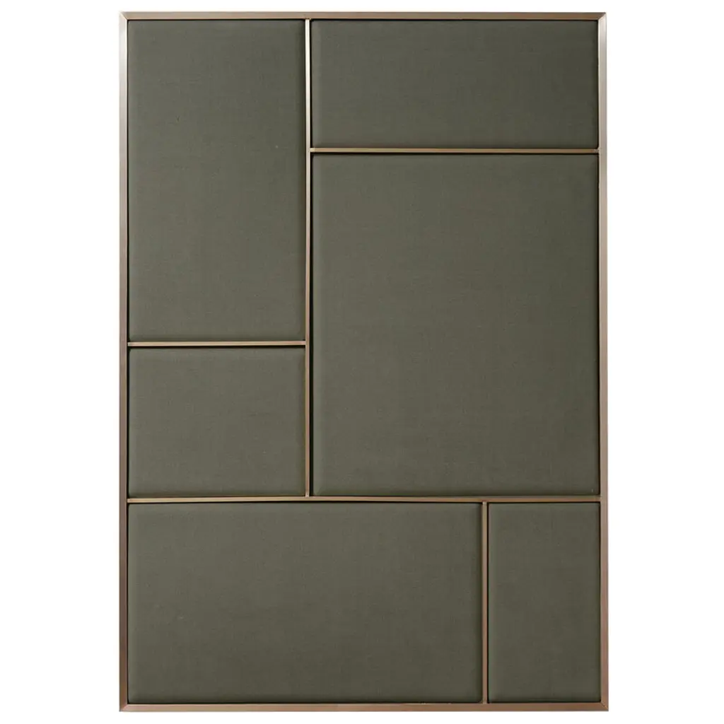 Nouveau medium pin board in oyster grey & brass frame by All The Way To ParisThe foam and textiles have been specially engineered to provide soundproofing. Including 2 hanging brackets. Hang them, turn them and make them your own. The pin boards are designed as a flexible module system in three sizes. Hang them in your home, pin your memories and create the visual image you want. These pin boards also have an acoustic sound absorbing effect, so they can be used in offices, at home or maybe at a recording studio.Additional Information:Material: Upholstery, foam, brassFabric colour: Oyster Grey Frame: Brass Dimensions: W 62.3 x D 2.5 x H 62.3 cmAvailable in other fabric colour options: Navy blue and rouge noirAvailable in other frame options: Navy blue powder coated steelAvailable in other size options: Small, large