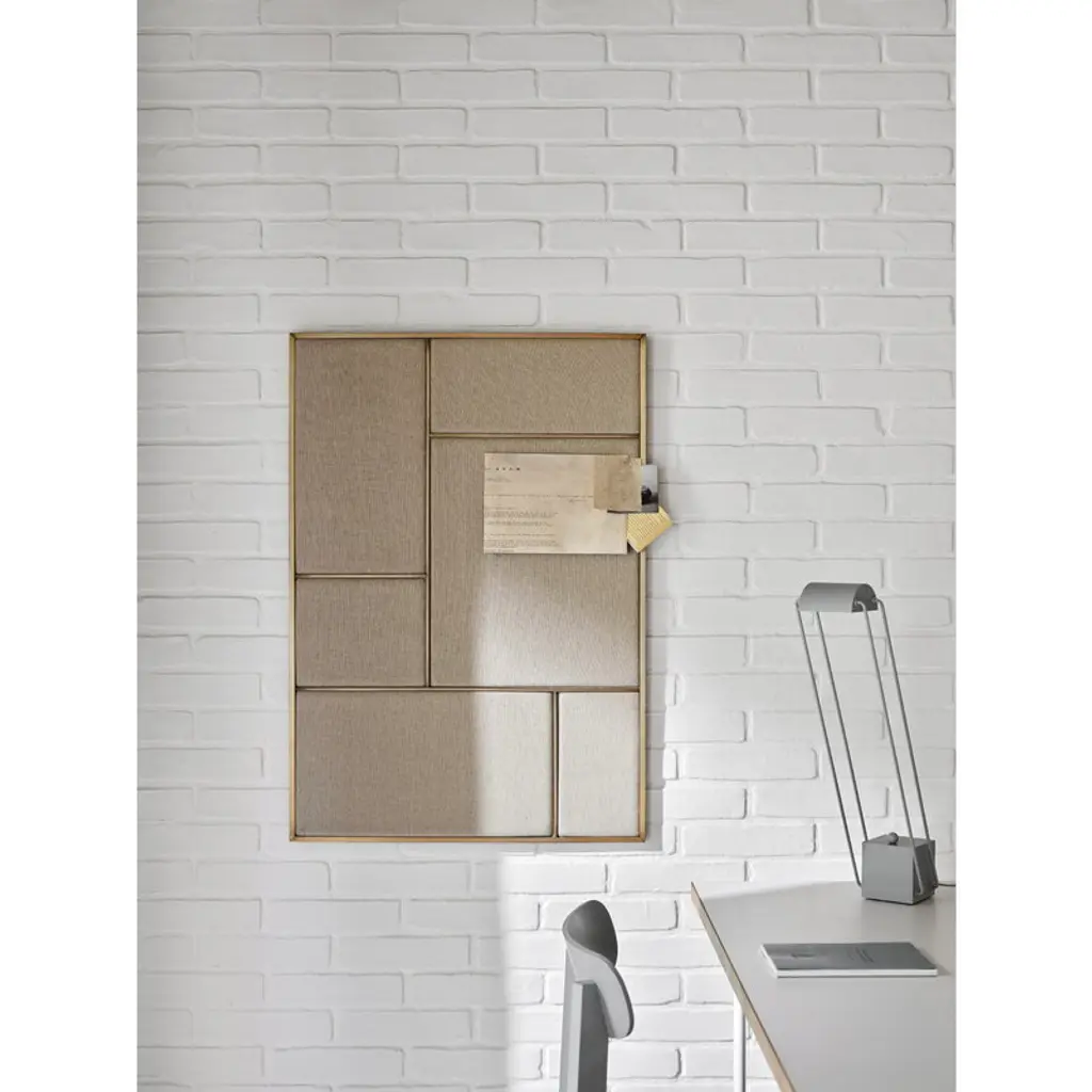 Nouveau Pin message board upgrades an ordinary pinboard into a versatile design piece. The brass frame gives this modern pinboard a luxurious outline, and the fabric coating offers a beautiful background for notes, photos and small messages – or whatever you decide to hang on your board! When empty, the Nouveau Pin functions as a minimalistic décor element. The Nouveau Pin collection, designed by All The Way To Paris, consists of different colors and sizes that combine flexibly together. All pinboards have an acoustic sound absorbing effect so they can be used for creating soft, pleasant acoustics in any space.