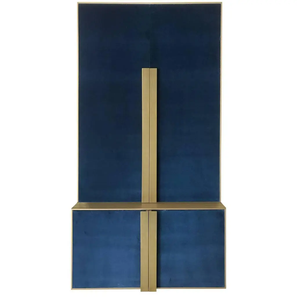 Nouveau small pin board in navy blue & brass frame by All The Way To ParisThe foam and textiles have been specially engineered to provide soundproofing. Including 2 hanging brackets. Hang them, turn them and make them your own. The pin boards are designed as a flexible module system in three sizes. Hang them in your home, pin your memories and create the visual image you want. These pin boards also have an acoustic sound absorbing effect, so they can be used in offices, at home or maybe at a recording studio.Additional Information:Material: Upholstery, foam, brassFabric colour: Navy BlueFrame: Brass Dimensions: W 26.7 x D 2.5 x H 62.3 cmAvailable in other fabric colour options: Oyster grey and rouge noirAvailable in other frame options: Navy blue powder coated steelAvailable in other size options: Medium, large