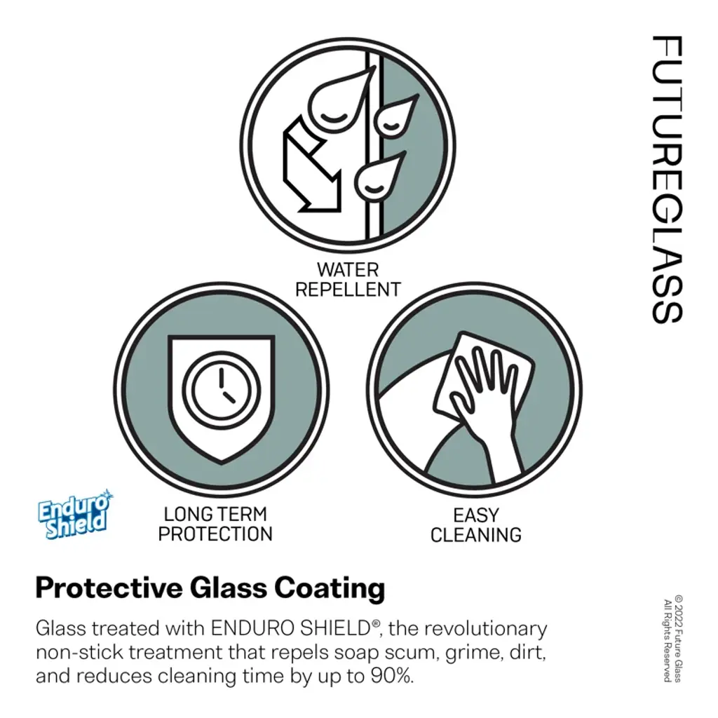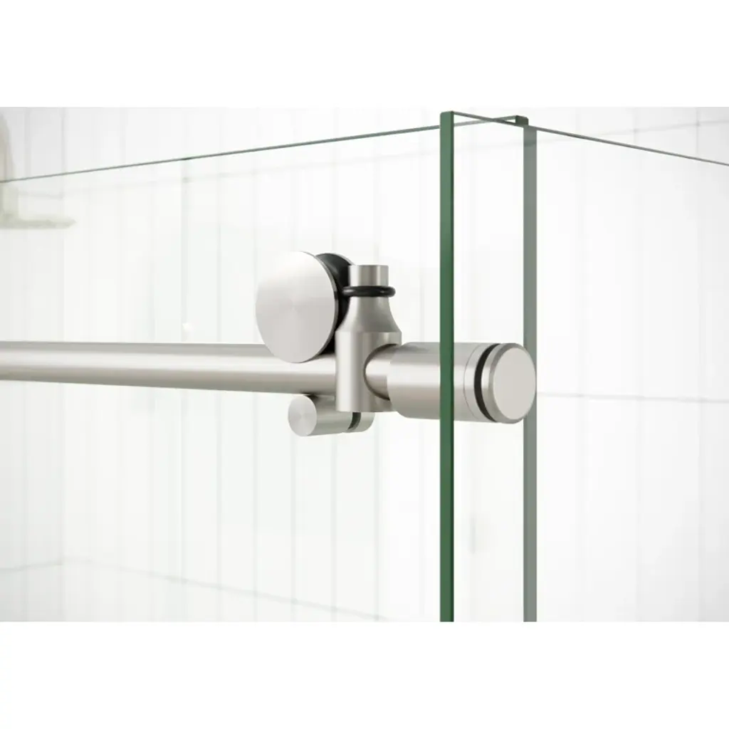 For a beautiful open-plan bathroom, the Nova, our high-end 90-degree sliding shower enclosure, makes the most of your space without compromising on style. Taller than most competitor shower stalls, each frameless 3/8” tempered glass panel comes in a standard 78” height. Glass is treated on both sides with EnduroShield coating, which aids in repelling water and soap residue, allowing the panels to be fully reversible. In addition, our superior quality solid brass hardware is available in a variety of color finishes to suit any bathroom. With our extensive range of frameless shower doors and panel sizes, the Nova by Glass Warehouse creates a clean, custom look. A fixed panel adds strength, while the high-quality roller system allows the door to glide easily as you slide it open and closed. As a result, your bathroom will be transformed, making it feel bigger and brighter.